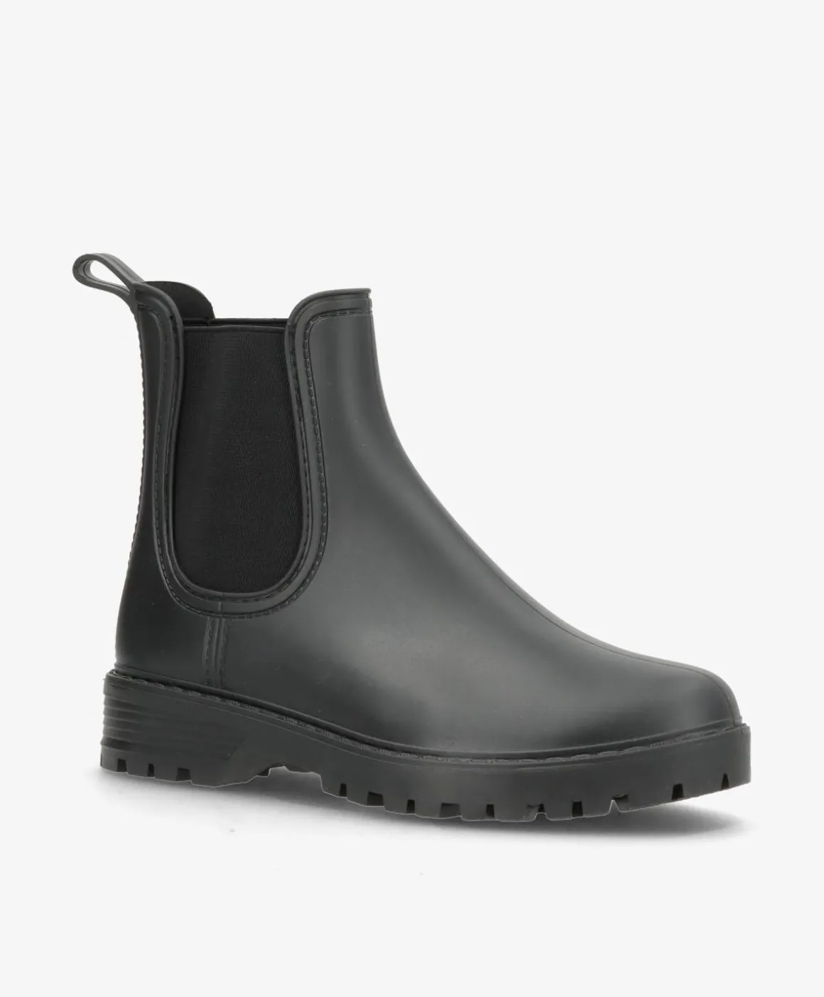 Gummistøvle fra Havanna Shoes er en moderne og praktisk gummistøvle i en klassisk sort farve. Det klassiske Chelsea-design med elastik i siderne og strop bagpå gør den nem at tage af og på, mens den vandafvisende overflade sikrer tørre fødder i alt slags vejr. Den kraftige, profilerede ydersål giver et solidt greb og stabilitet på både våde og glatte underlag.