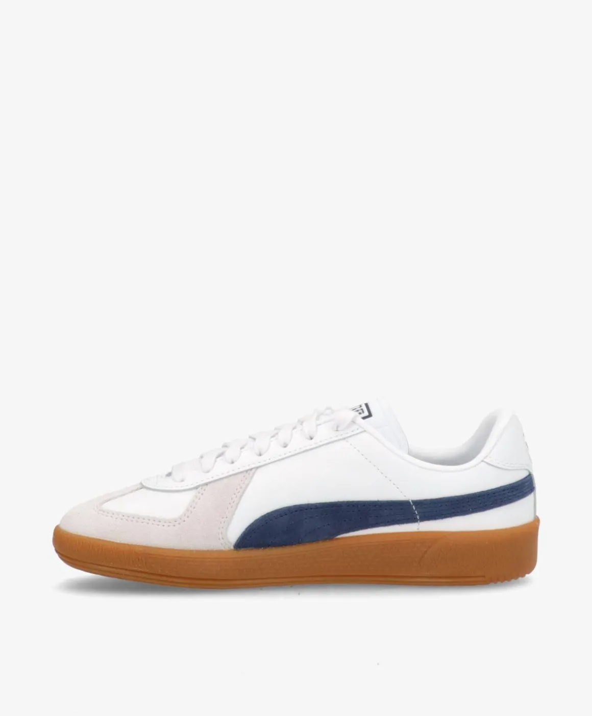 Puma Army Trainer sneakers til kvinder kombinerer klassisk design med moderne komfort. Disse sneakers i hvid og blå har en holdbar læderoverdel, en slidstærk gummisål i brun, og en polstret indersål for ekstra komfort. Den klassiske snørelukning sikrer en sikker pasform, og de subtile gulddetaljer tilføjer et strejf af elegance. Perfekte til daglig brug og passer godt til både casual og sporty outfits.