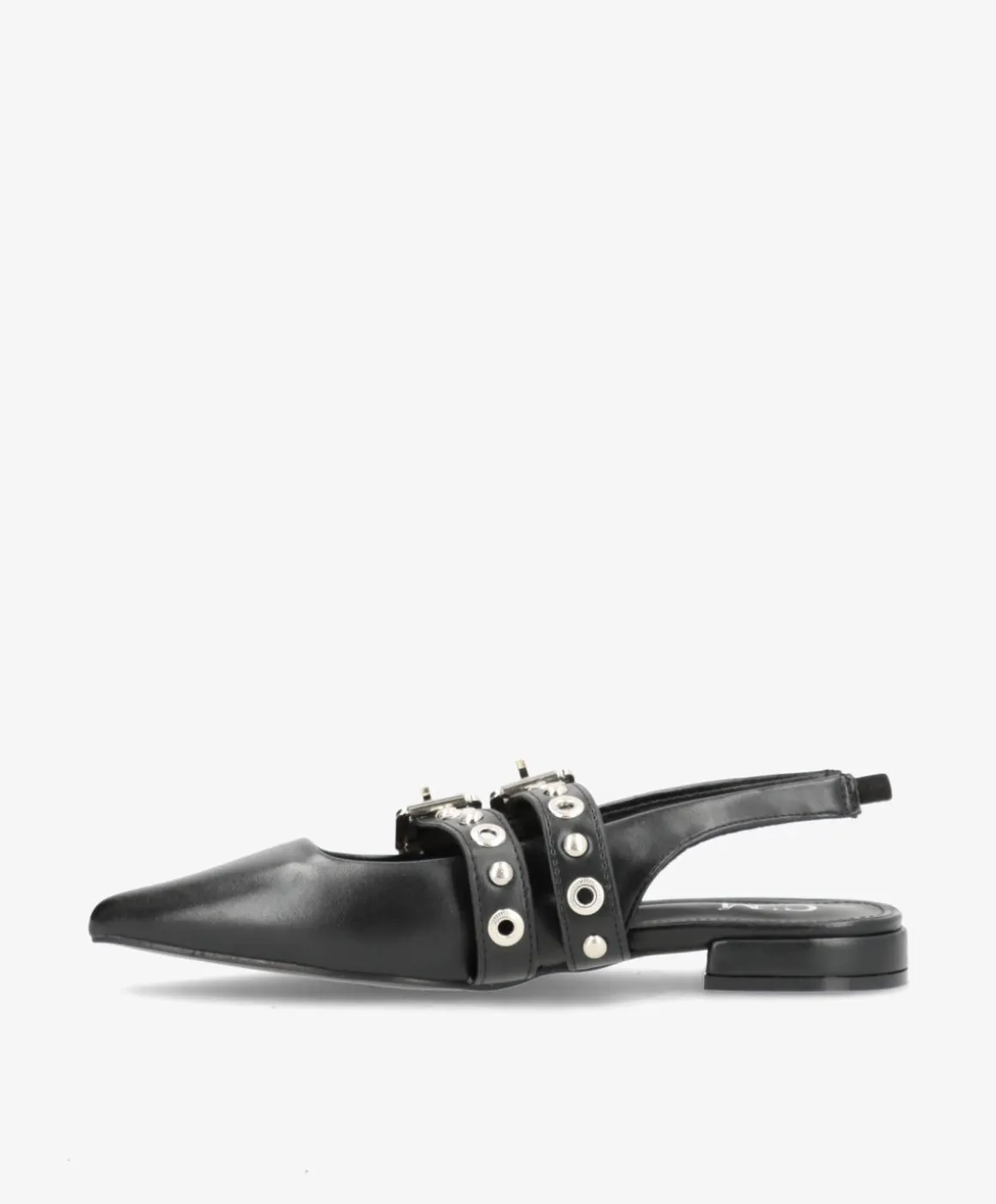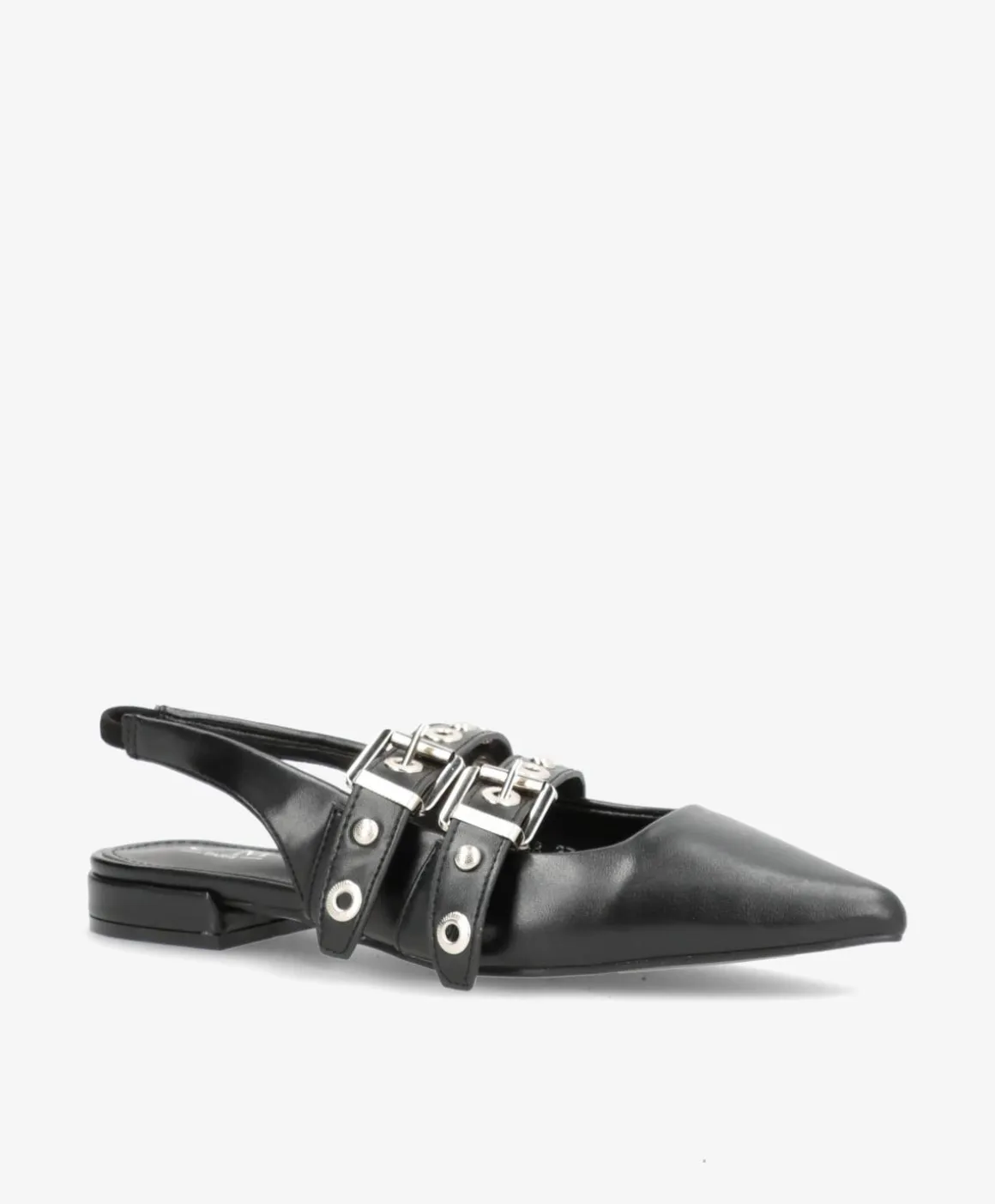 AURAY ballerinaen er et edgy take på den klassiske flade sko. Designet kombinerer skarpt spidset snude, dobbelt spænde-detaljer og sølvfarvede nitter med en moderne slingback-rem, der gør skoen nem at hoppe i. Den bløde overflade tilføjer varme og kontrast til det rå hardware-look – perfekt til dig, der elsker feminine styles med attitude.