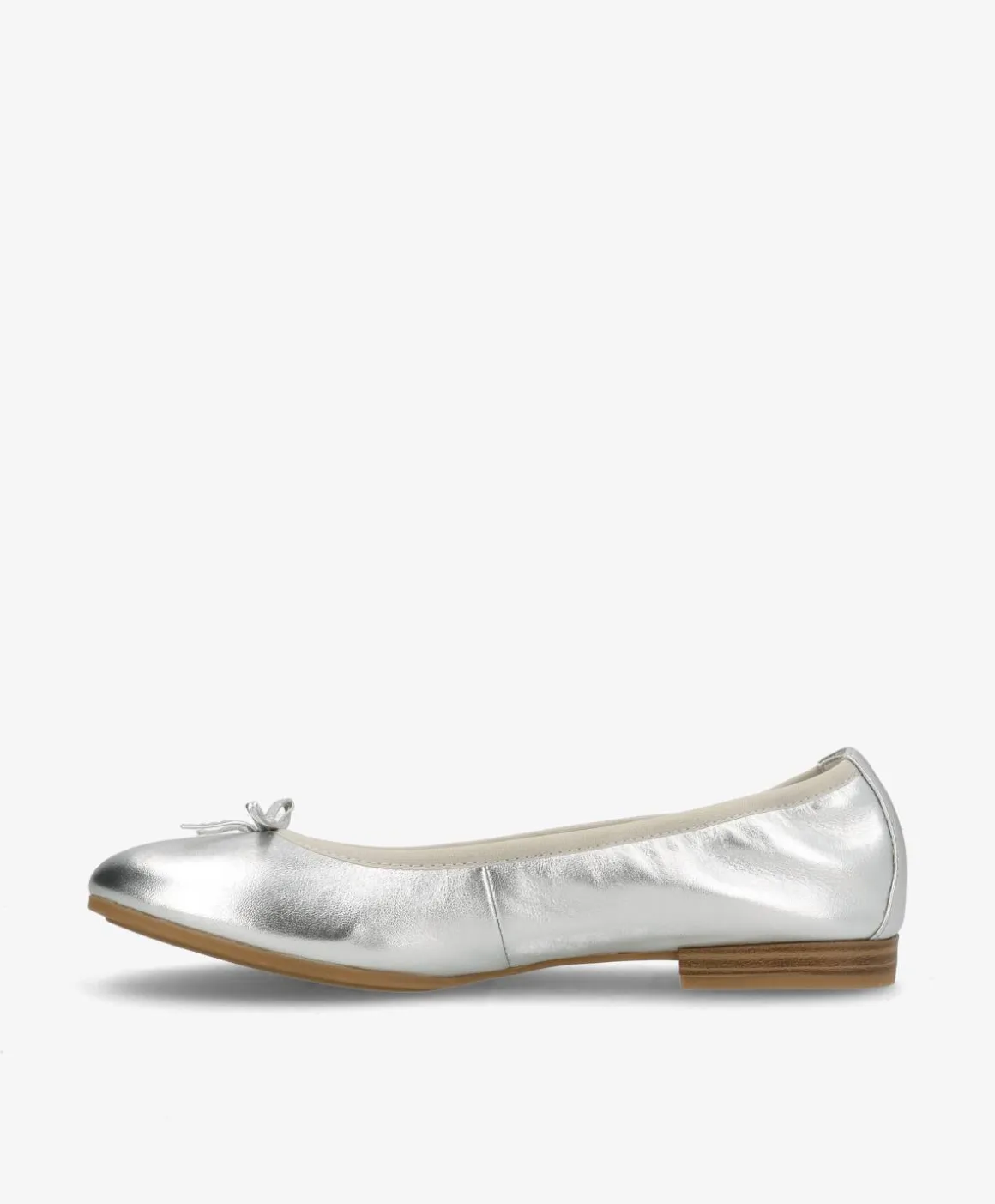 Feminine og elegante ballerinaer fra Tamaris i en trendy, metallisk sølv. De smukke ballerinaer har en klassisk silhuet, der får et ekstra fint touch med den smalle sløje på fronten. Med den åbne pasform er de nemme at påføre og de sidder godt til med den lukkede snude. De har en flad, men blød bund og en helt kort hæl, der følger fodens naturlige svaj. De smukke ballerinaer er det perfekte match til hende, der har en elegant og feminin stil, og det stilrene design gør dem til en drøm at style.
