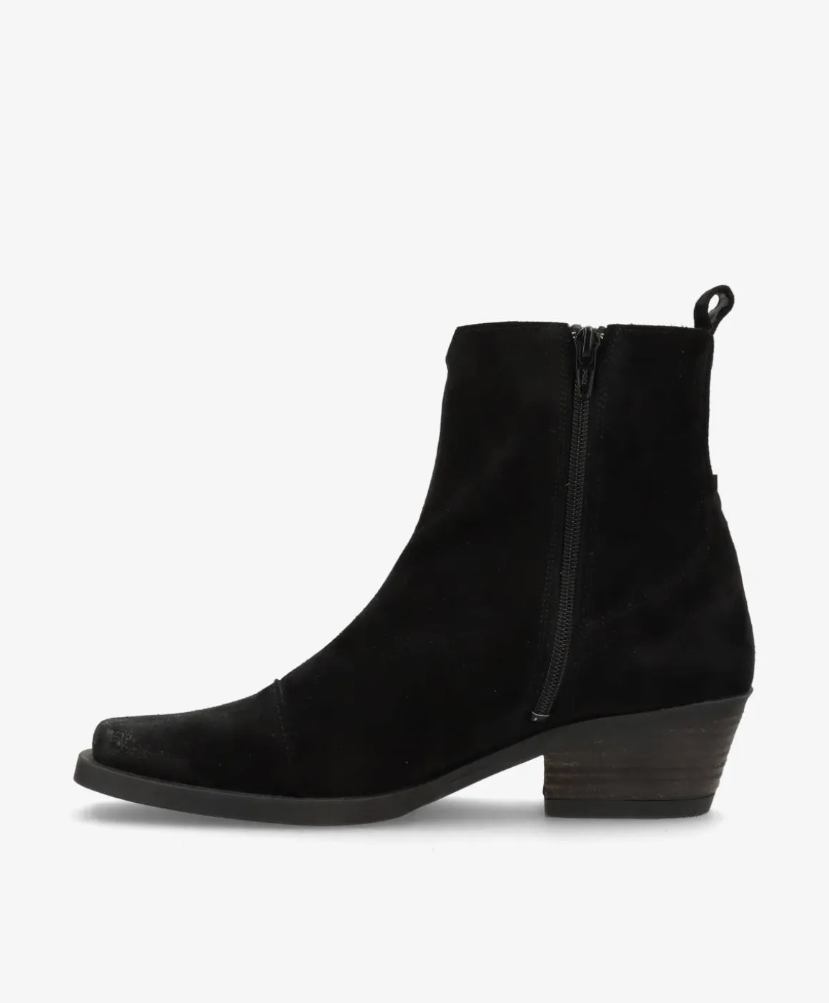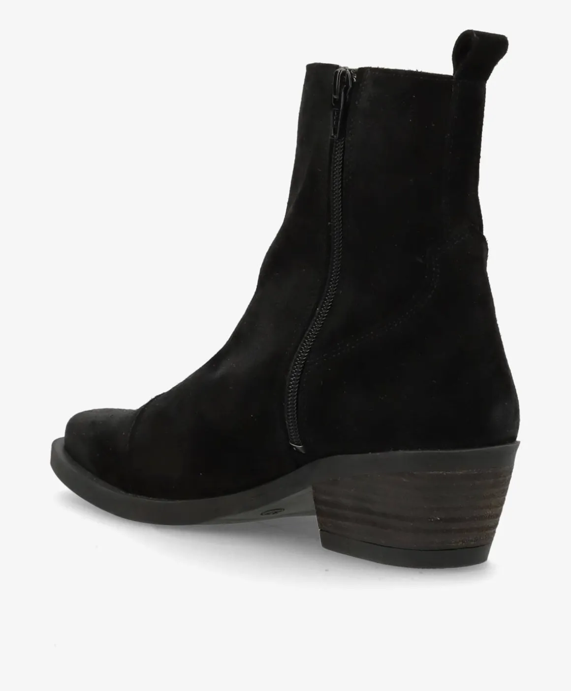Den lækreste ruskindsstøvle fra Shoedesign Copenhagen i et smørblødt skind, der kun bliver smukkere af lidt patina. Den fine støvle har en kantet snude, som giver et cool touch til designet. Hælen måler små 5 cm, så støvlen løfter uden at gå på kompromis med komforten. Derudover har den en diskret lynlås på indersiden, så den er nem at påføre. Støvlen har en tidløs sort farve.