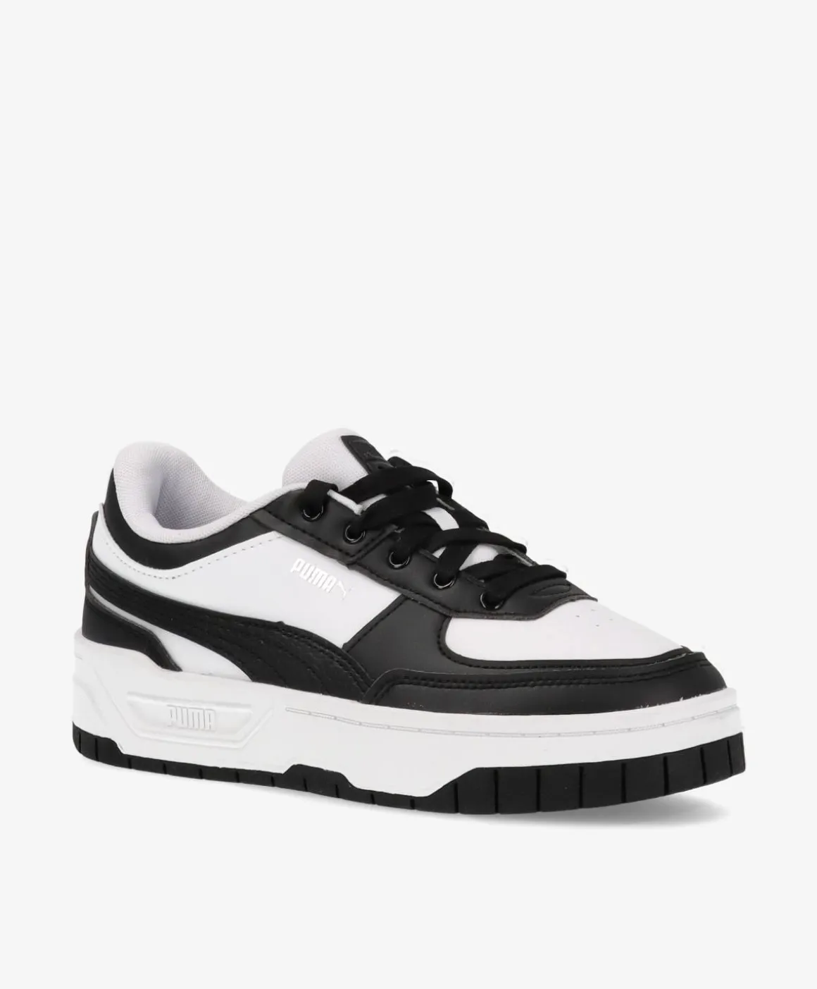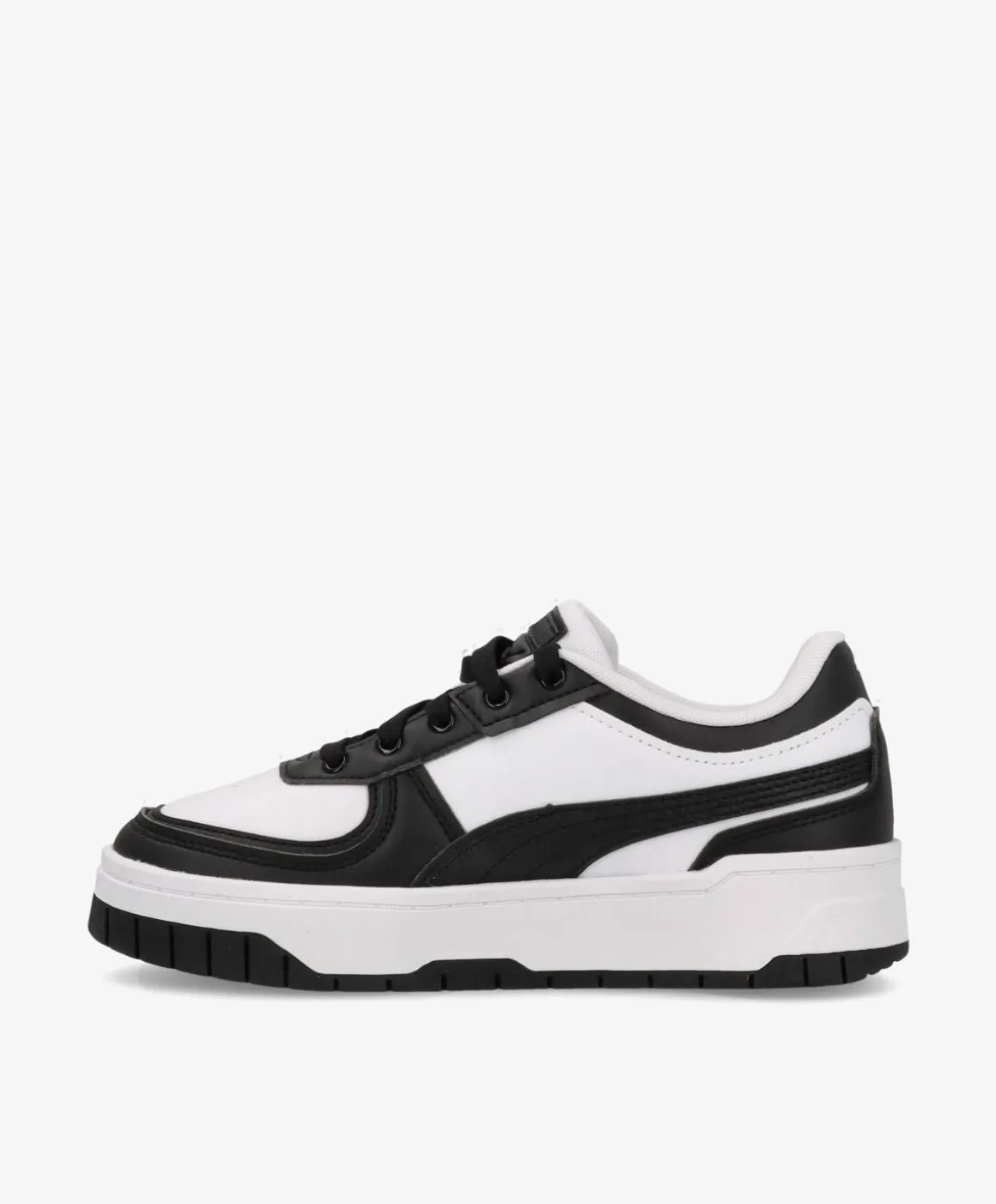 Enkel og stilren sneakers fra PUMA med en chunky sål, som virkelig giver dens ellers meget minimalistiske udseende noget kant. De lækre sneakers har et fedt, kontrastfyldt look med sorte detaljer mod den hvide grundfarve. De lukkes forsvarligt med snørebånd og kan derfor nemt tilpasses individuelle behov og ønsker. Den grove sål er ikke kun en gennemtænkt design feature, det gør også, at de er super behagelige at have på. Spice garderoben op med de lækre sneaks, som nemt kan styles til ethvert outfit.