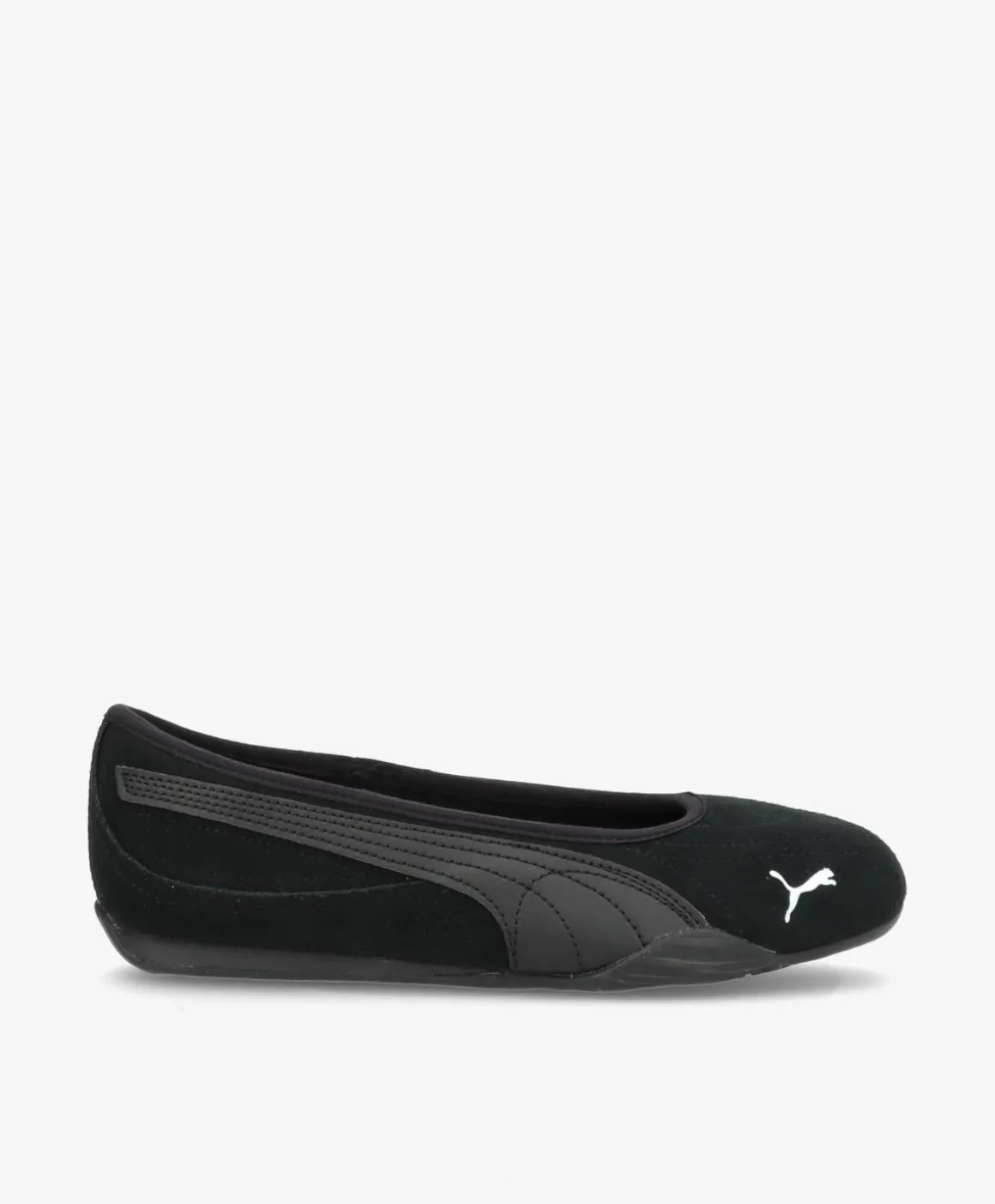 PUMA CATCH SOLEIL er en klassisk og elegant ballerina med et sporty twist. Modellen er udført i en stilren sort farve, som giver et tidløst og alsidigt udtryk, der passer perfekt ind i enhver garderobe. Det bløde og lette materiale kombineret med de diskrete syninger og det ikoniske PUMA-logo skaber et minimalistisk look med et eksklusivt præg.