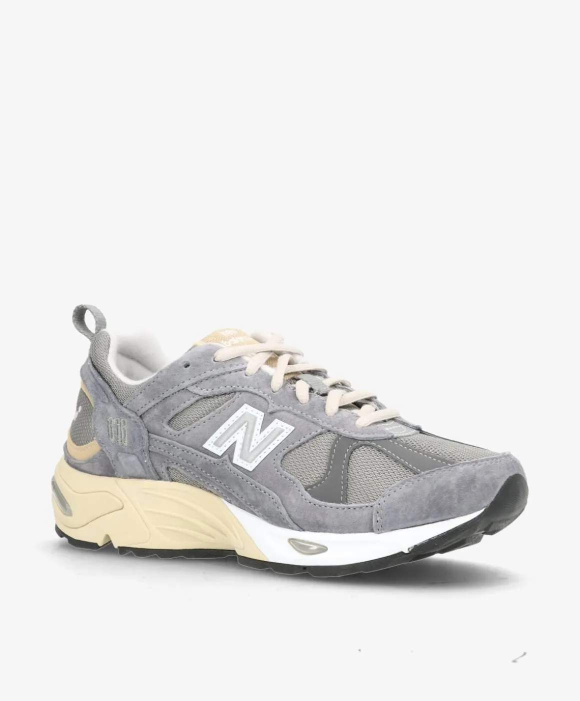 New Balance CM878JS1 er en stilren og sporty sneaker, der kombinerer klassisk New Balance-design med et moderne udtryk. Overdelen er fremstillet i en eksklusiv kombination af blødt ruskind og åndbart mesh, som giver skoen et let og balanceret look i den grå farve. De afdæmpede nuancer og de karakteristiske detaljer gør modellen nem at integrere i både afslappede og mere feminine outfits.