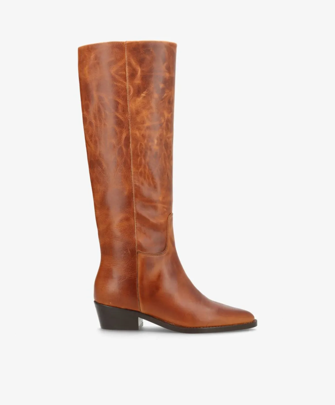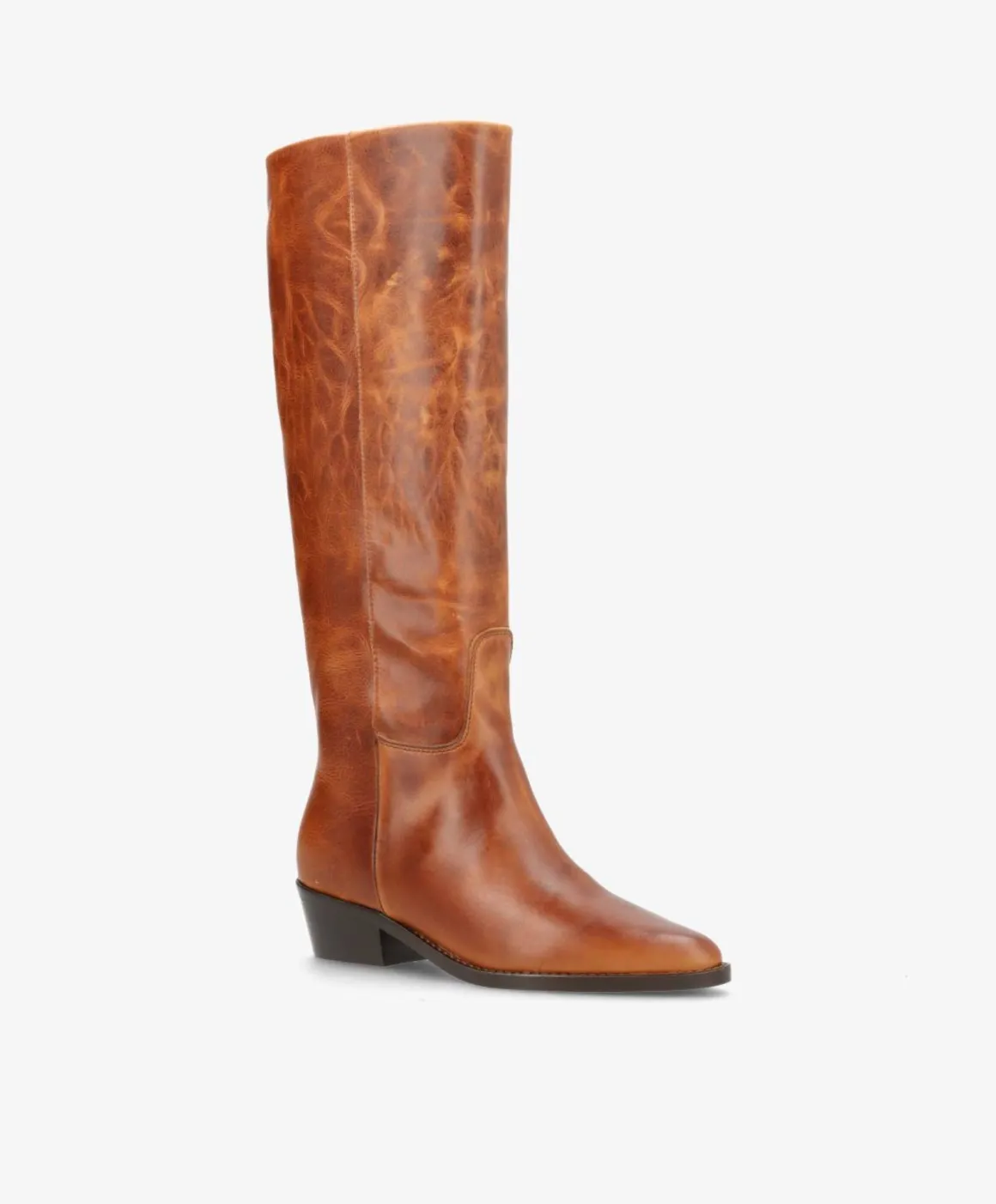 CONFIDENCE LONG er en lang damestøvle i smukt cognac læder, der kombinerer klassisk elegance med et moderne touch. Den høje silhuet understøtter et sofistikeret look, mens den bløde kvalitet sikrer komfort hele dagen. Den let skrå hæl giver både højde og stabilitet, og den afrundede spids fuldender det feminine udtryk.