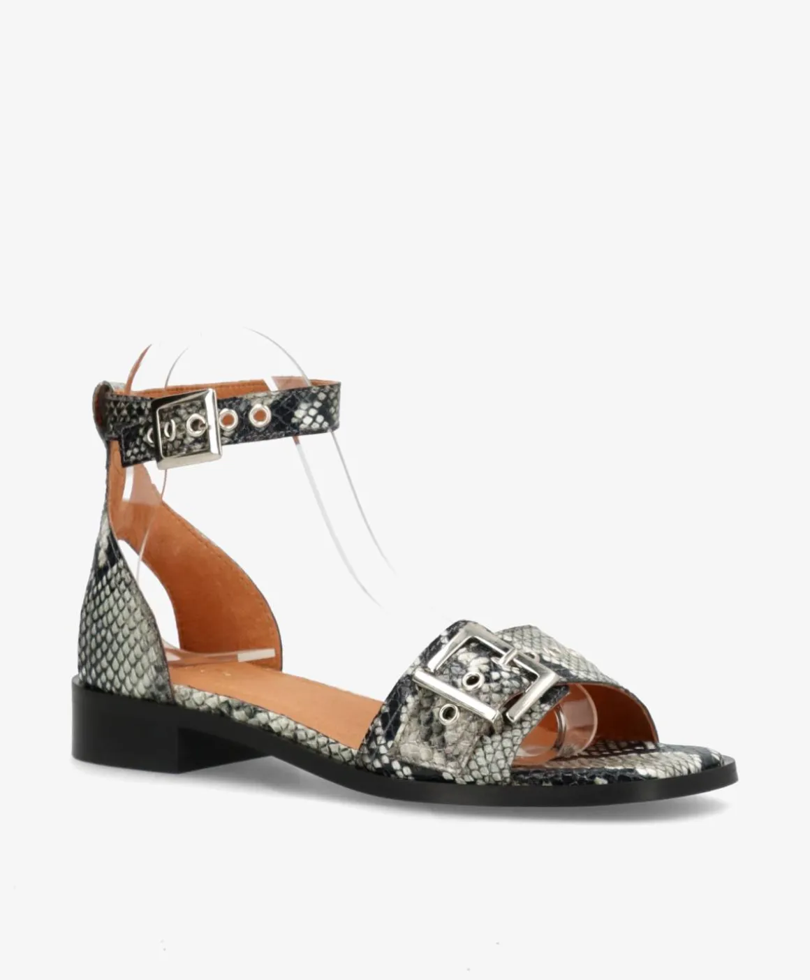 DESIRE P fra phenumb copenhagen er den perfekte kombination af edge og elegance. De fine sandaler er udført i snake skind med dekorative spænder både over vristen og om anklen, som giver et eksklusivt og moderne look. Den flade hæl og justerbare lukning sikrer komfort hele dagen, mens de fine detaljer i metal tilføjer karakter og stil.