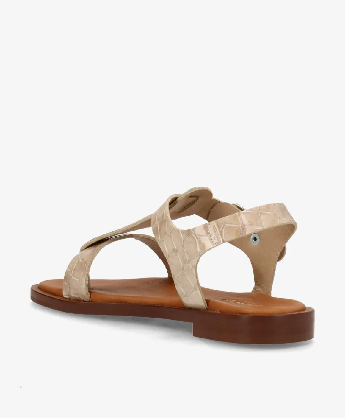 Den smukkeste Shoedesign Copenhagen sandal i et beige, præget skind. De flotte sandaler har et cool croco præg, som giver et råt touch til det stilrene design. De har en tåstrop foran, en rem der løber over foden samt en justerbar ankelrem, så de sidder super godt til på foden. Derudover kan de nemt tilpasses efter behov med den justerbare rem. Sandalerne er perfekte til hende med den klassiske stil, og kan nemt styles på et væld af måder.
