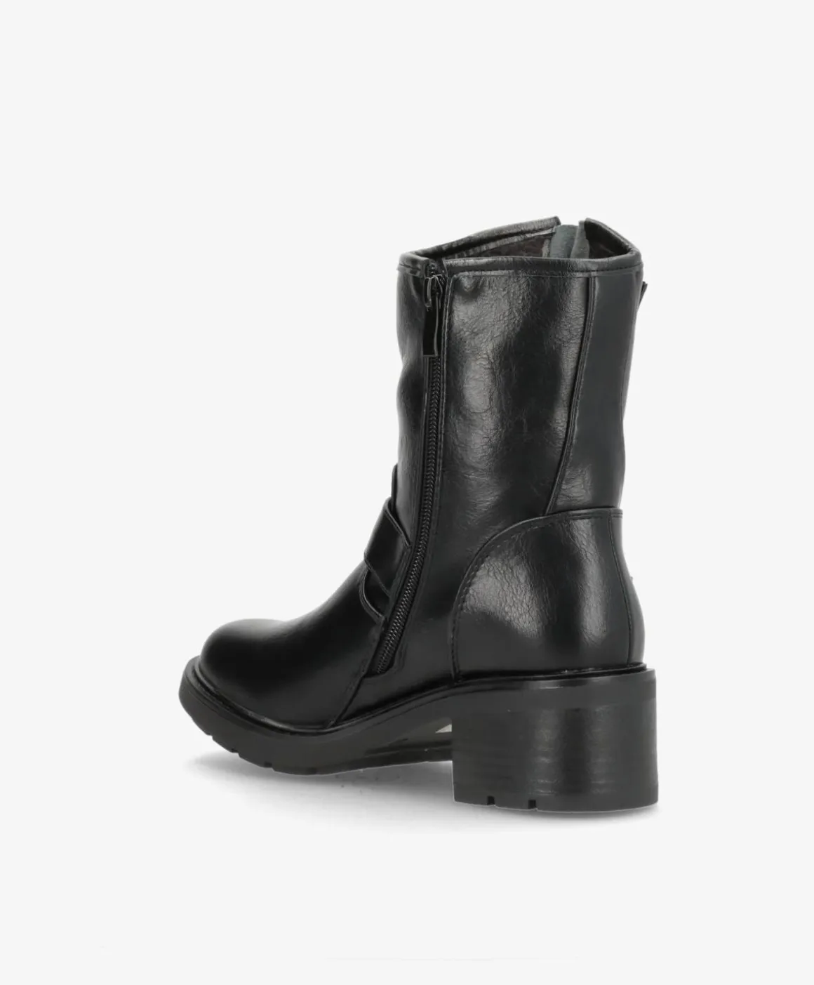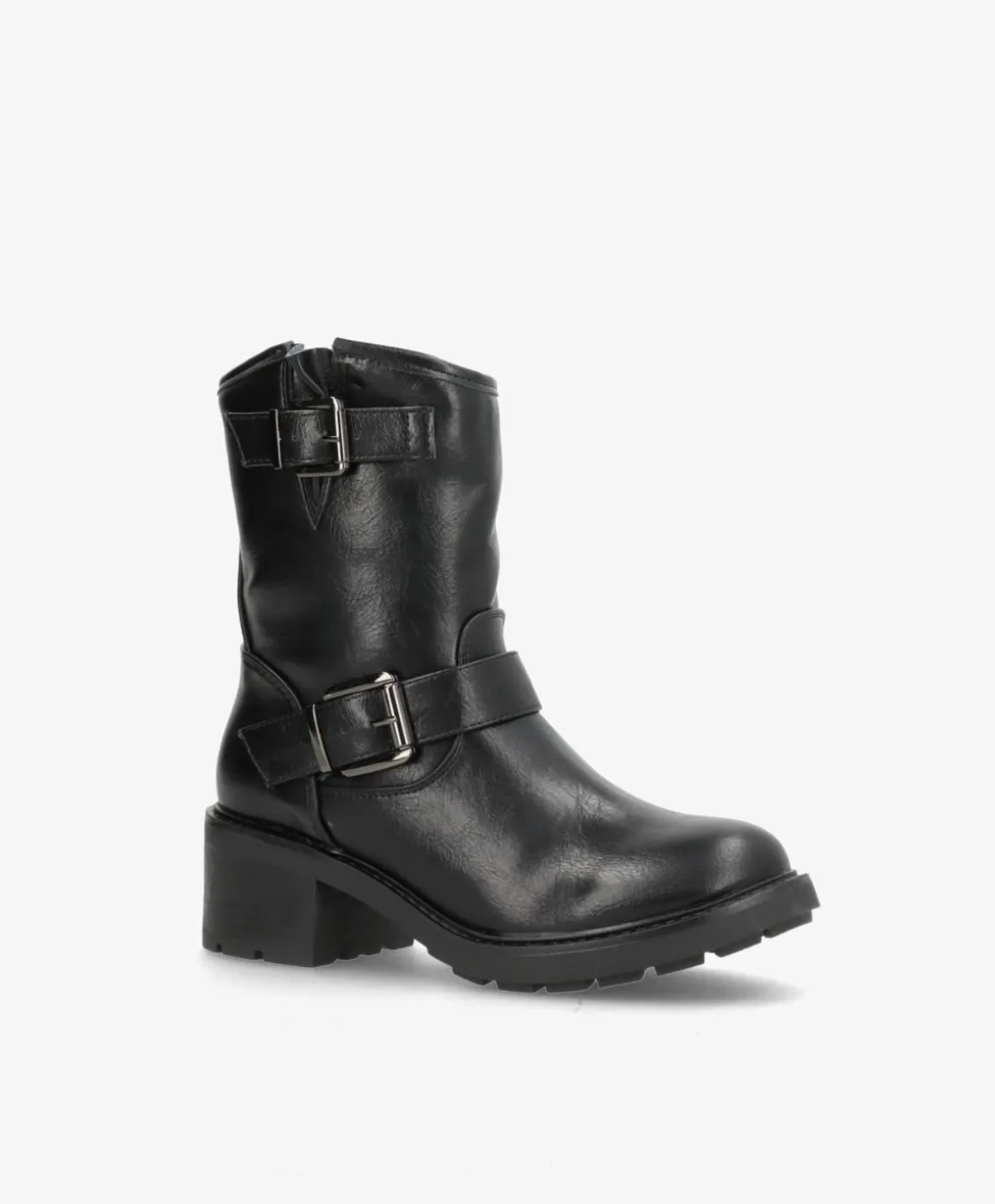 Denne støvle i imiteret skind har et robust og stilfuldt design, der er perfekt til både hverdag og fest. Den fås i både sort og brun, hvilket gør den alsidig og nem at matche med forskellige outfits. Støvlen er udstyret med dekorative spænder og en solid hæl, der giver ekstra højde og komfort. En praktisk lynlås på indersiden sikrer, at støvlen er nem at tage af og på. Den slidstærke gummisål giver et godt greb, hvilket gør støvlerne velegnede til hverdag.