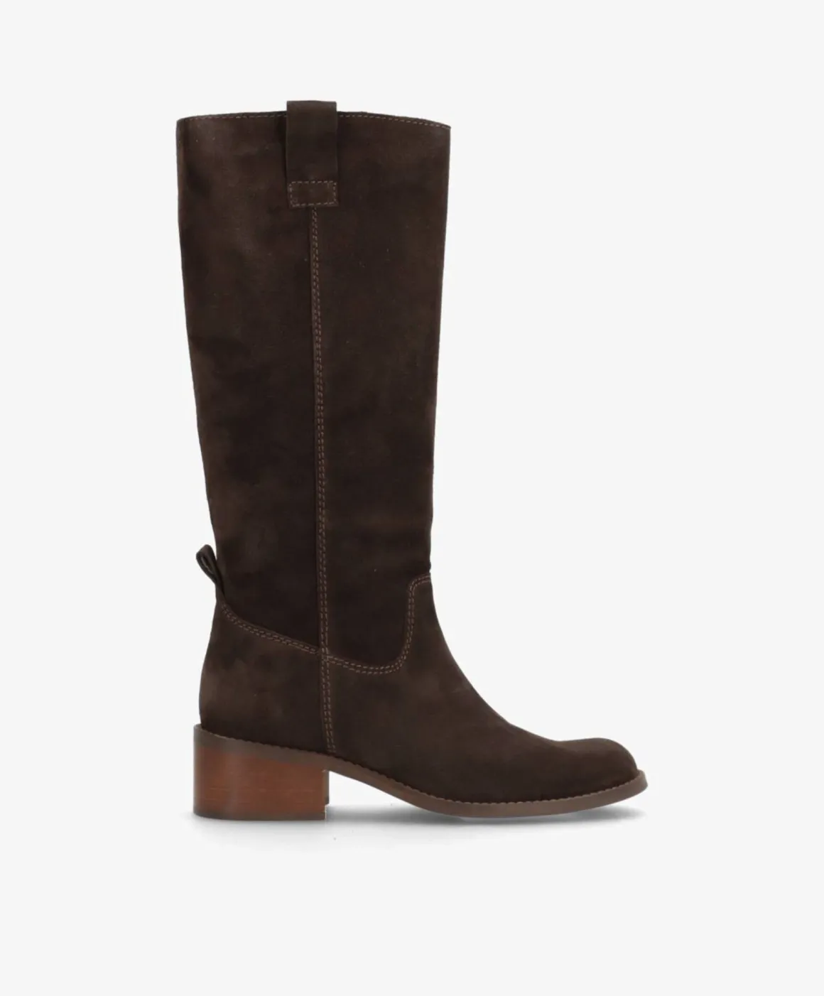 MARTINA er den perfekte langskaftede støvle til dig, der elsker enkelhed med karakter. Det bløde, mørkebrune ruskind kombineret med det klassiske western-inspirerede skaft giver et sofistikeret og naturligt look, som passer perfekt til både hverdagsjeans og strikkjoler. Den stabile hæl og let rundede snude gør støvlen komfortabel hele dagen – uden at gå på kompromis med stilen.