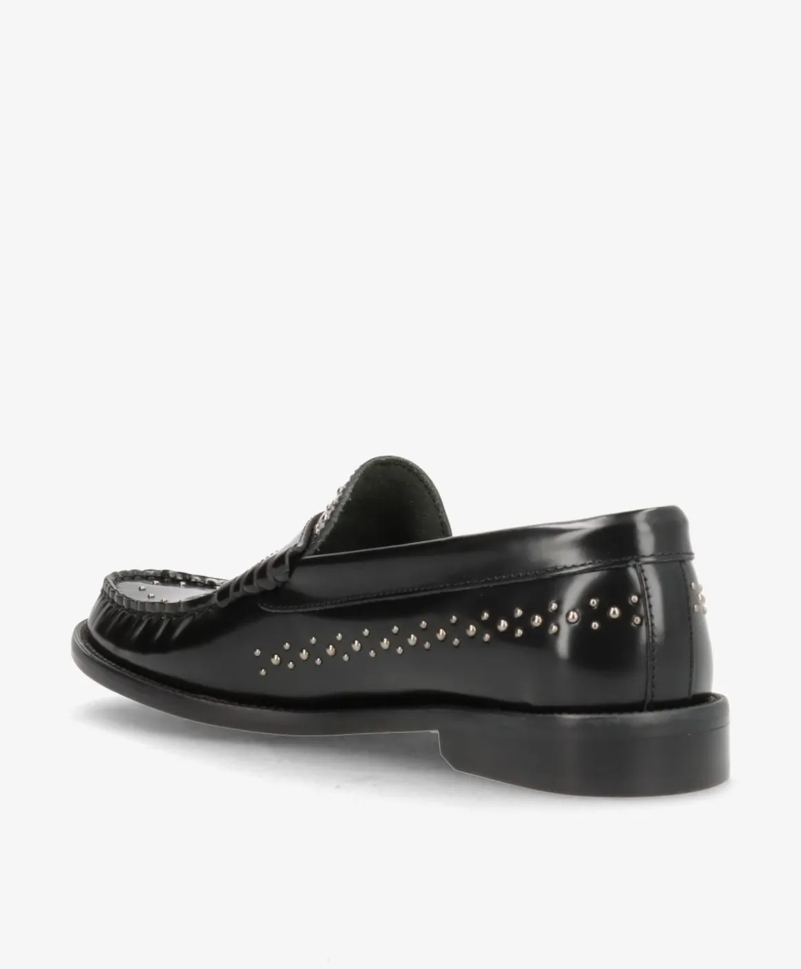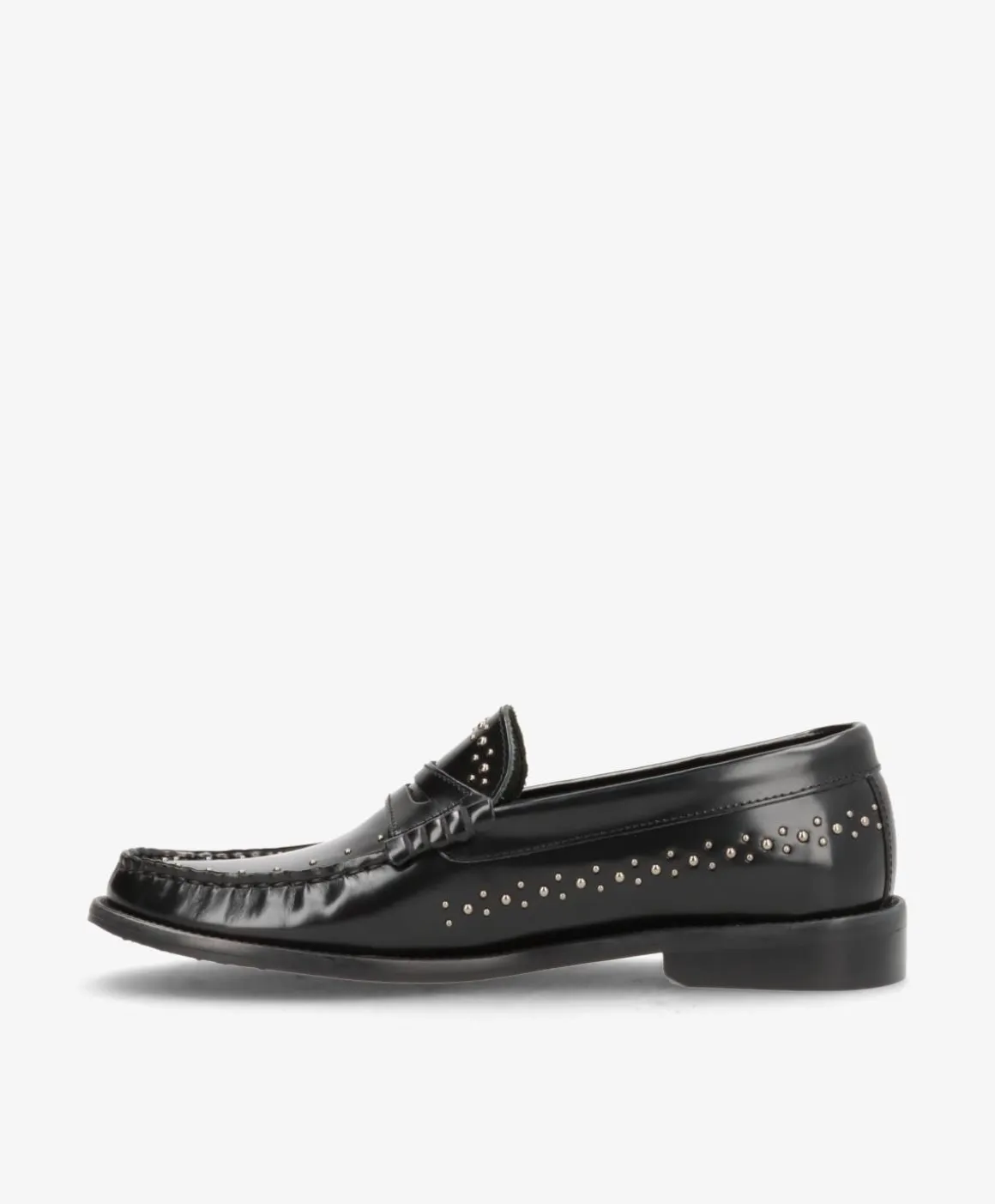 MAYFAIR P er den perfekte blanding af klassisk stil og moderne kant. Denne loafer, designet i Danmark og håndlavet i Europa, udstråler eksklusivitet med sin lækre læderfinish og de unikke nitter, som giver skoen et edgy twist. De delikate metalnitter langs kanten og vristen tilfører et råt og moderne look, som nemt kan styles op eller ned til forskellige outfits.