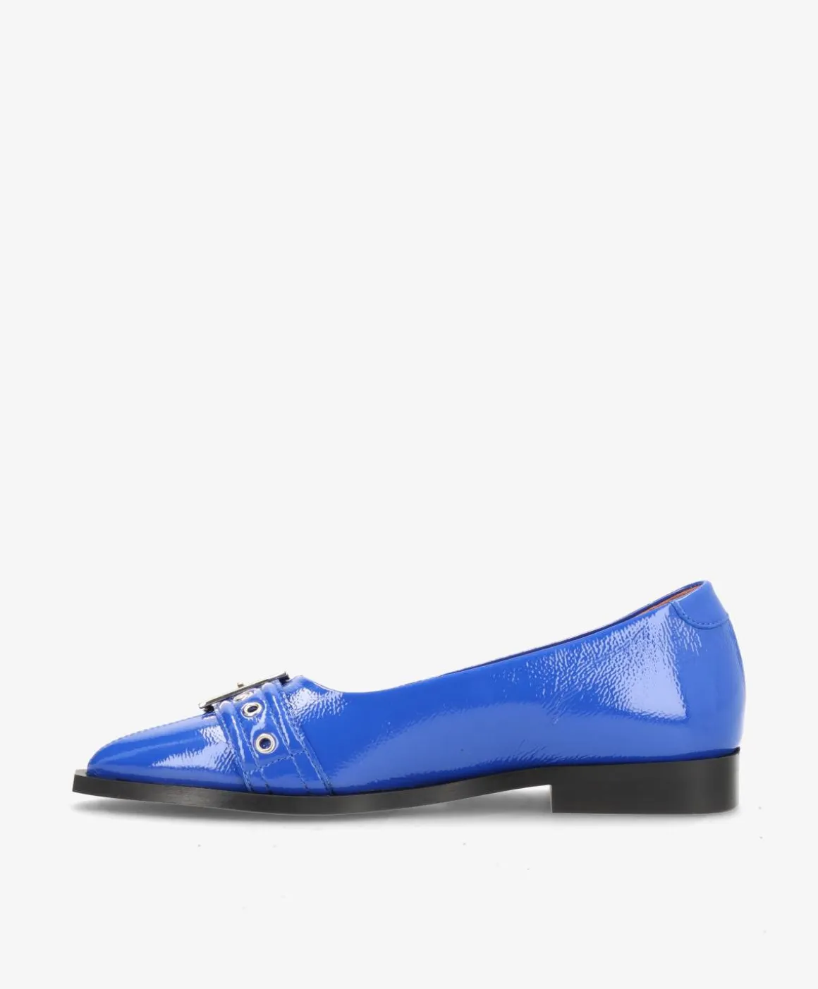 De smukkeste ballerinaer fra phenumb i en cool, blå lak med spænde. Ballerinaerne er det perfekte miks mellem det rå og feminine, og passer derfor perfekt ind i garderoben hos hende, der elsker at lege med stiludtrykket. Ballerinaerne har en spids snude, som giver et elegant look, og hælen er kantet, hvilket giver et moderne touch til designet. På fronten er de prydet med et groft spænde, der binder det hele sammen. De smukke ballerinaer kan bruges både til hverdag og fest, og kan styles på et væld af måder.