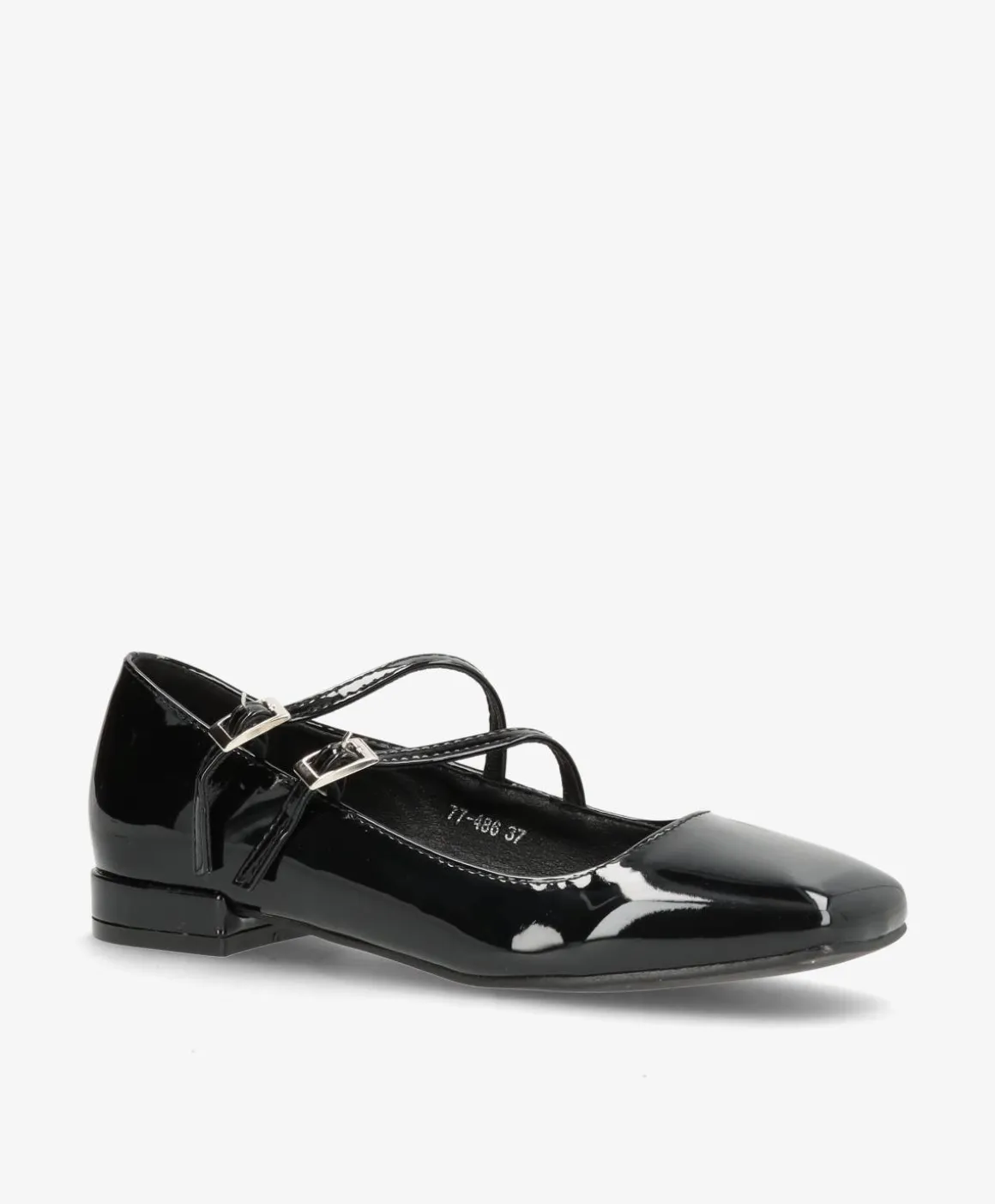 Smukke, feminine Mary-Janes i en tidløs sort, lak. De fine ballerinaer lukkes med to, smalle remme, som har justerbart spænde, der kan tilpasses efter behov. De har en helt kort hæl, som giver et ekstra feminint touch.