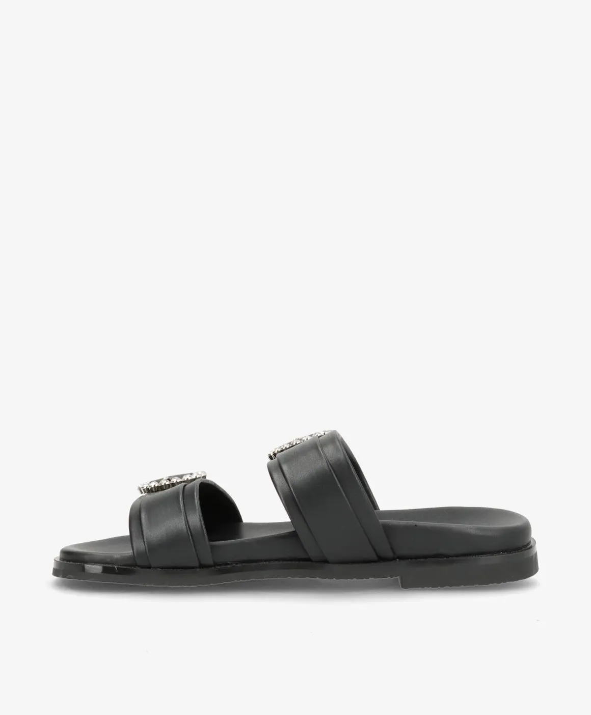 Flotte, klassiske sandaler i en tidløs sort med fine spænder. De flotte sandaler har en flad bund med god komfort, hvilket gør dem perfekte til hverdagsbrug. Sandalerne har to, brede remme med justerbare spænder, som desuden er en flot pynt.