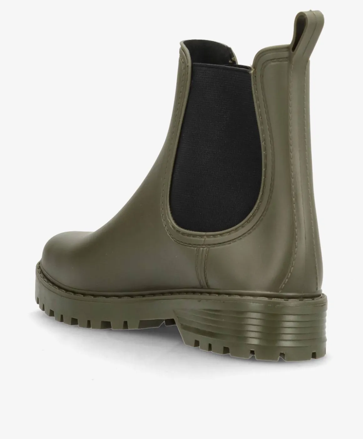 Gummistøvle fra Havanna Shoes er en moderne og praktisk gummistøvle i en elegant khaki farve. Det klassiske Chelsea-design med elastik i siderne og strop bagpå gør den nem at tage af og på, mens den vandafvisende overflade sikrer tørre fødder i alt slags vejr. Den kraftige, profilerede ydersål giver et solidt greb og stabilitet på både våde og glatte underlag.