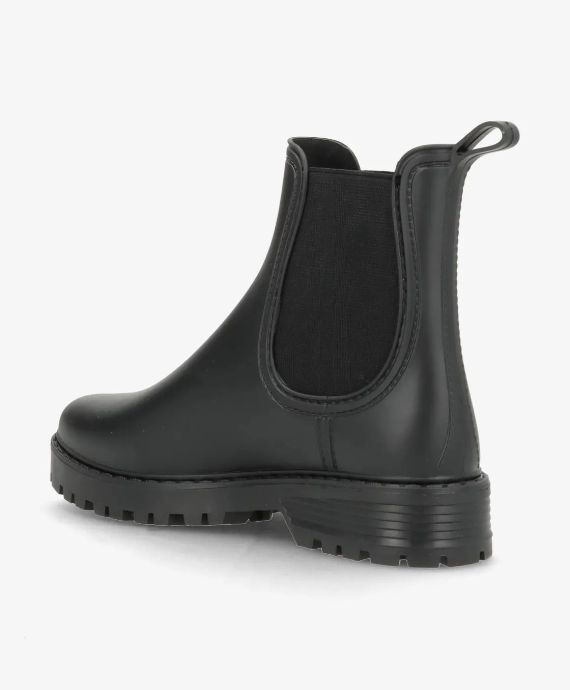 Gummistøvle fra Havanna Shoes er en moderne og praktisk gummistøvle i en klassisk sort farve. Det klassiske Chelsea-design med elastik i siderne og strop bagpå gør den nem at tage af og på, mens den vandafvisende overflade sikrer tørre fødder i alt slags vejr. Den kraftige, profilerede ydersål giver et solidt greb og stabilitet på både våde og glatte underlag.