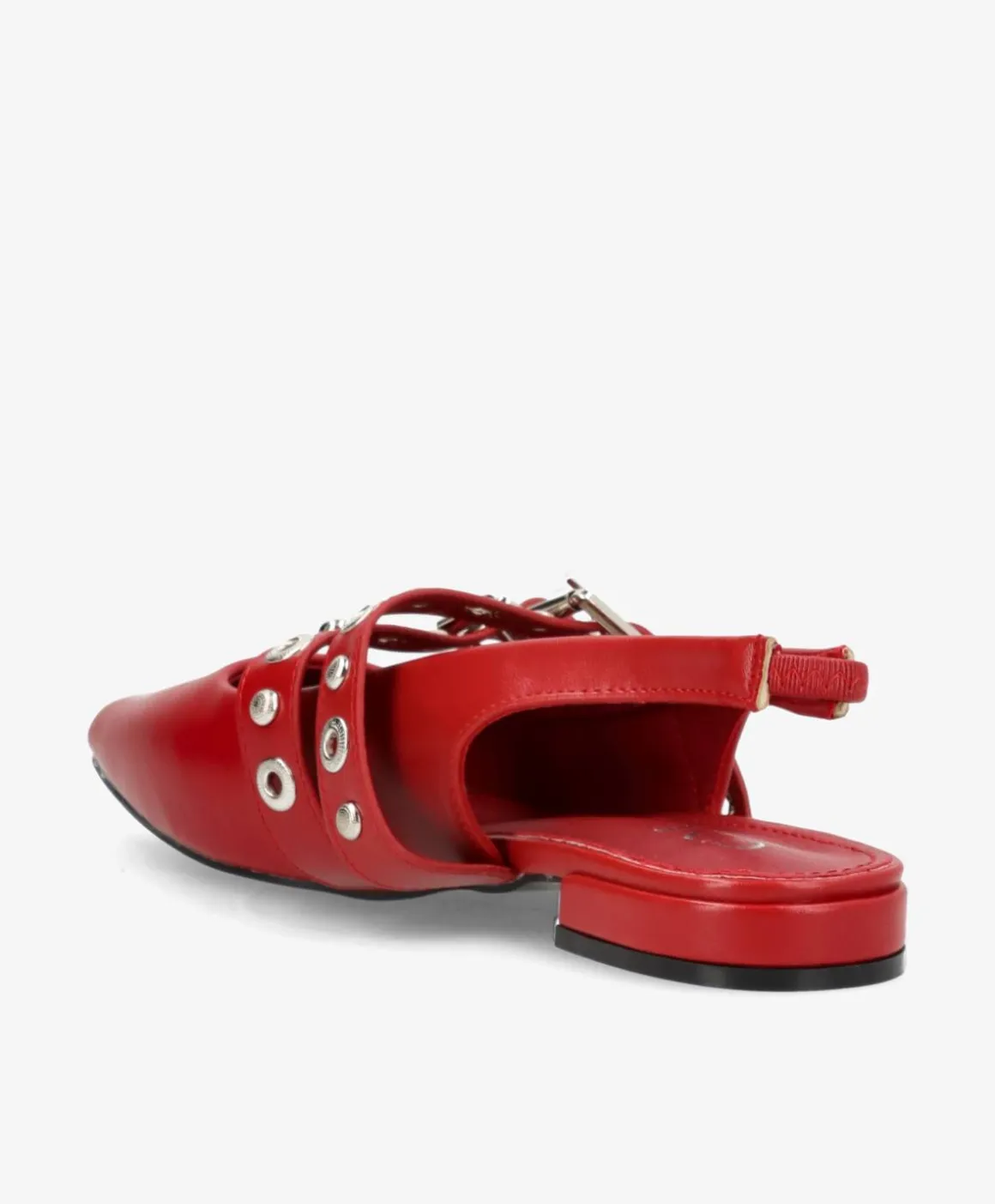 AURAY ballerinaen er et edgy take på den klassiske flade sko. Designet kombinerer skarpt spidset snude, dobbelt spænde-detaljer og sølvfarvede nitter med en moderne slingback-rem, der gør skoen nem at hoppe i. Den bløde vinrøde overflade tilføjer varme og kontrast til det rå hardware-look – perfekt til dig, der elsker feminine styles med attitude.