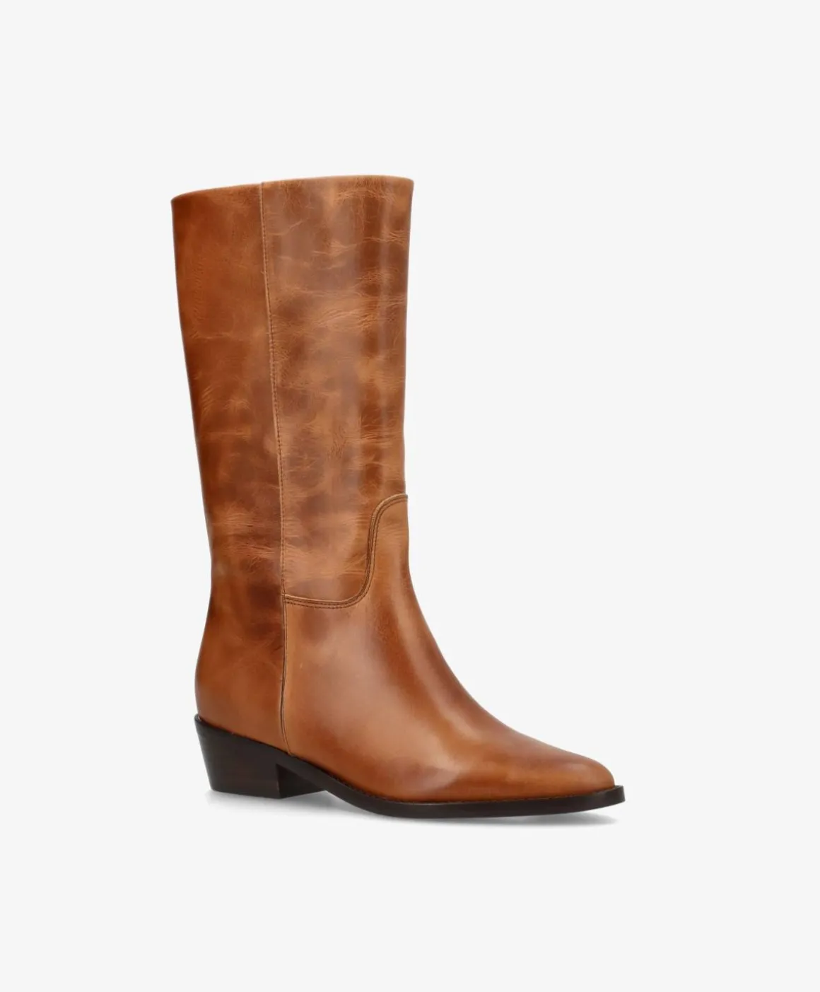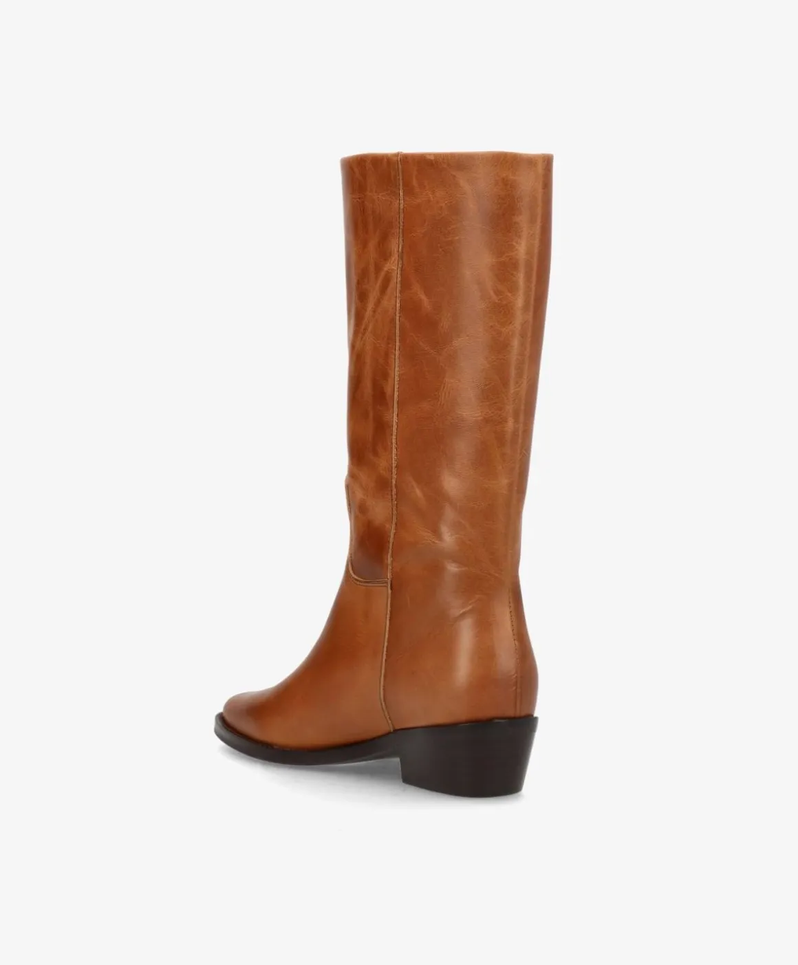 CONFIDENCE er den perfekte lange støvle, der kombinerer et sofistikeret udtryk med et tidsløst design. Det bløde, glansfulde cognac læder giver et luksuriøst look, mens den slanke silhuet og den lette hæl tilfører elegance og komfort i hverdagen.
