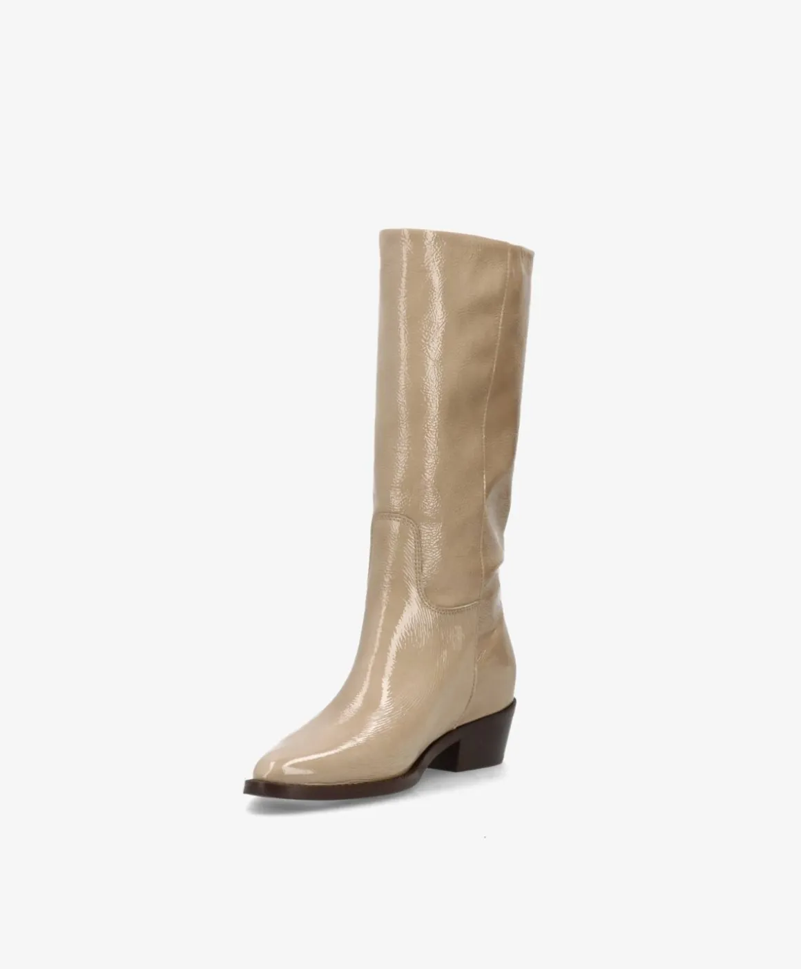 Løft dit look med den sofistikerede og slanke silhuet fra CONFIDENCE i beige laklæder fra phenumb copenhagen. Denne høje støvle er designet til at fange opmærksomhed med sit skinnende og luksuriøse finish, der emmer af attitude og eksklusivitet. Det spidse snit og den diskrete western-inspirerede hæl gør den perfekt til både rå denim og elegante kjoler.