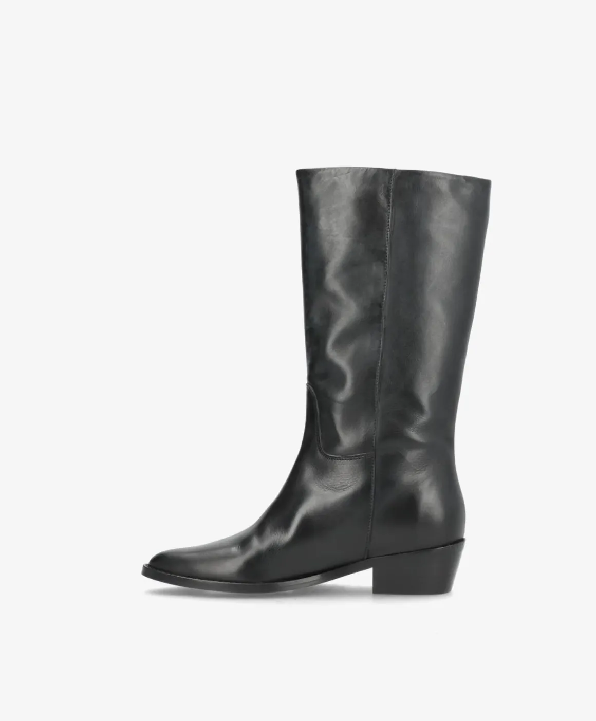 CONFIDENCE LONG i sort læder er den perfekte lange damestøvle til dig, der ønsker et tidløst og eksklusivt udtryk. Det glatte skind giver et sofistikeret look, mens den klassiske silhuet gør støvlen alsidig og let at style til både hverdag og aften. Den solide hæl giver komfort og stabilitet, så du kan have støvlen på hele dagen.