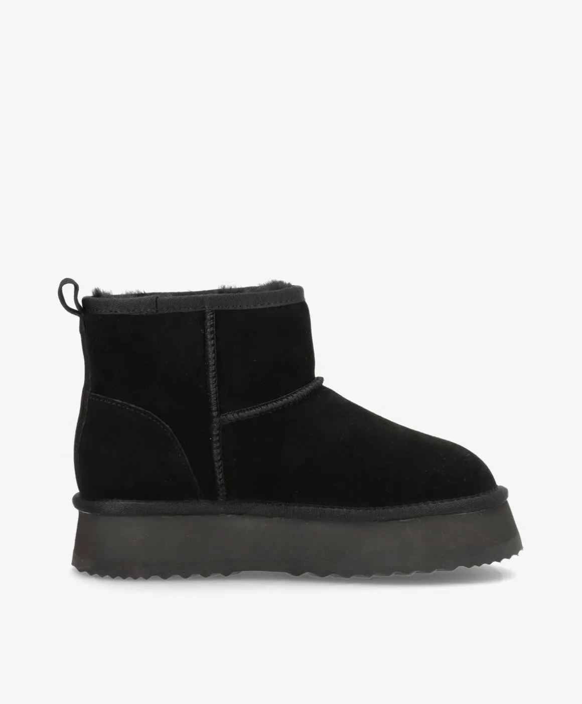 De lækreste bamsestøvler i en klassisk sort – perfekte til efterårsuniformen. De bløde støvler er lavet i et flot ruskind og har en høj sål, som giver et chunky look og løfter lidt. Støvlerne har ægte uld foring, som holder foden varm og giver ekstra komfort. De er nemme at påføre og er super komfortable, så de roligt kan bæres hele dagen. De fine bamsestøvler har desuden tydelige syninger, som bryder det rene design lidt.