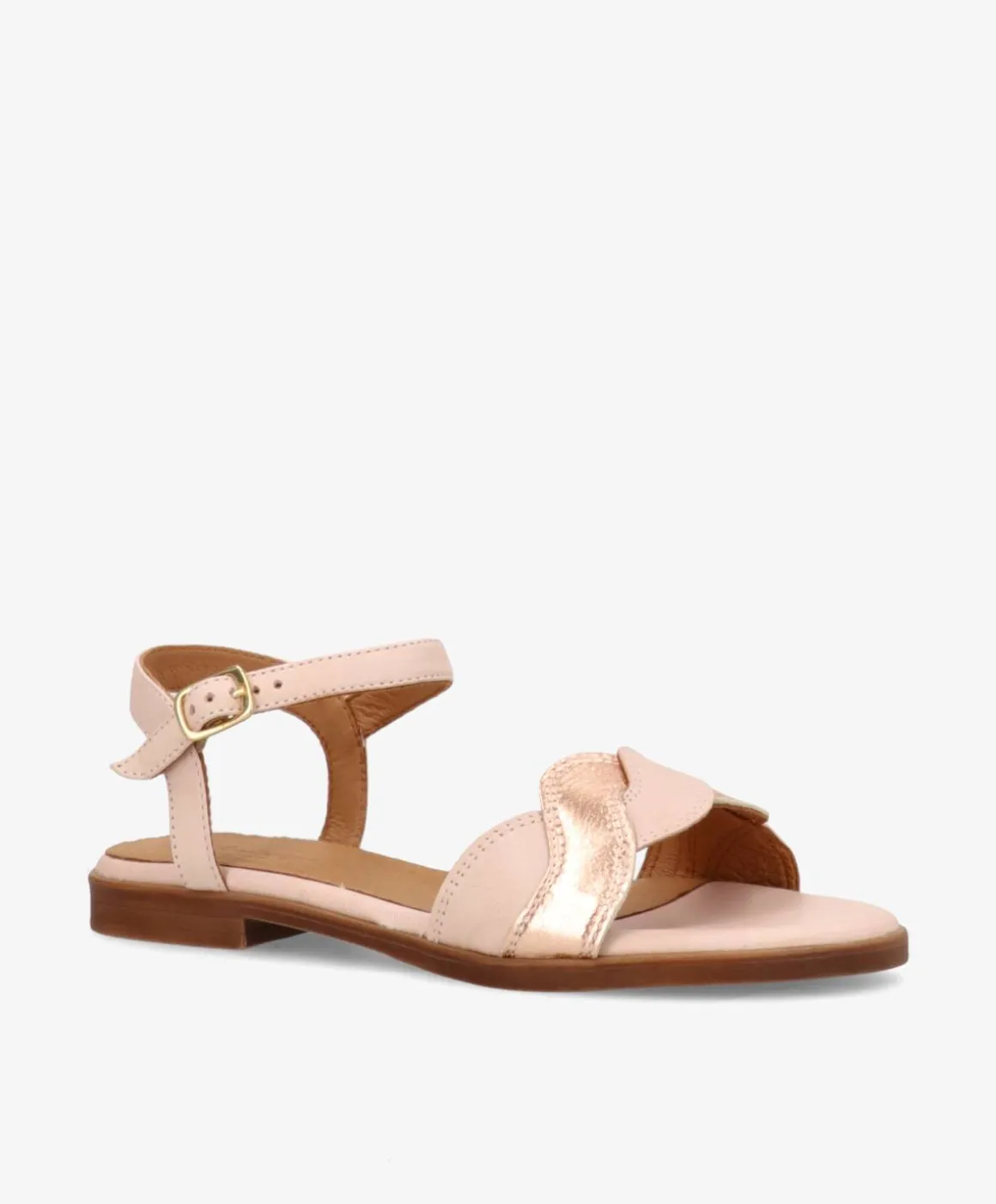 Bliv forelsket i vores smukke Elisa sandal, der er indbegrebet af feminin elegance. Med en buet rem over tæerne, holder den foden godt på plads og har samtidig et blødt og frisk udtryk. Remmen er multifarvet og har en shiny, guld effekt. Elisa lukkes desuden om anklen med en smal rem, der også er justerbar.