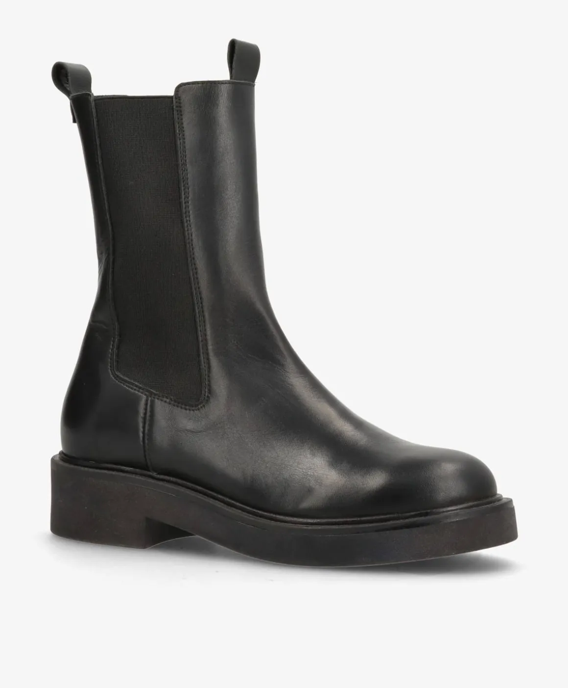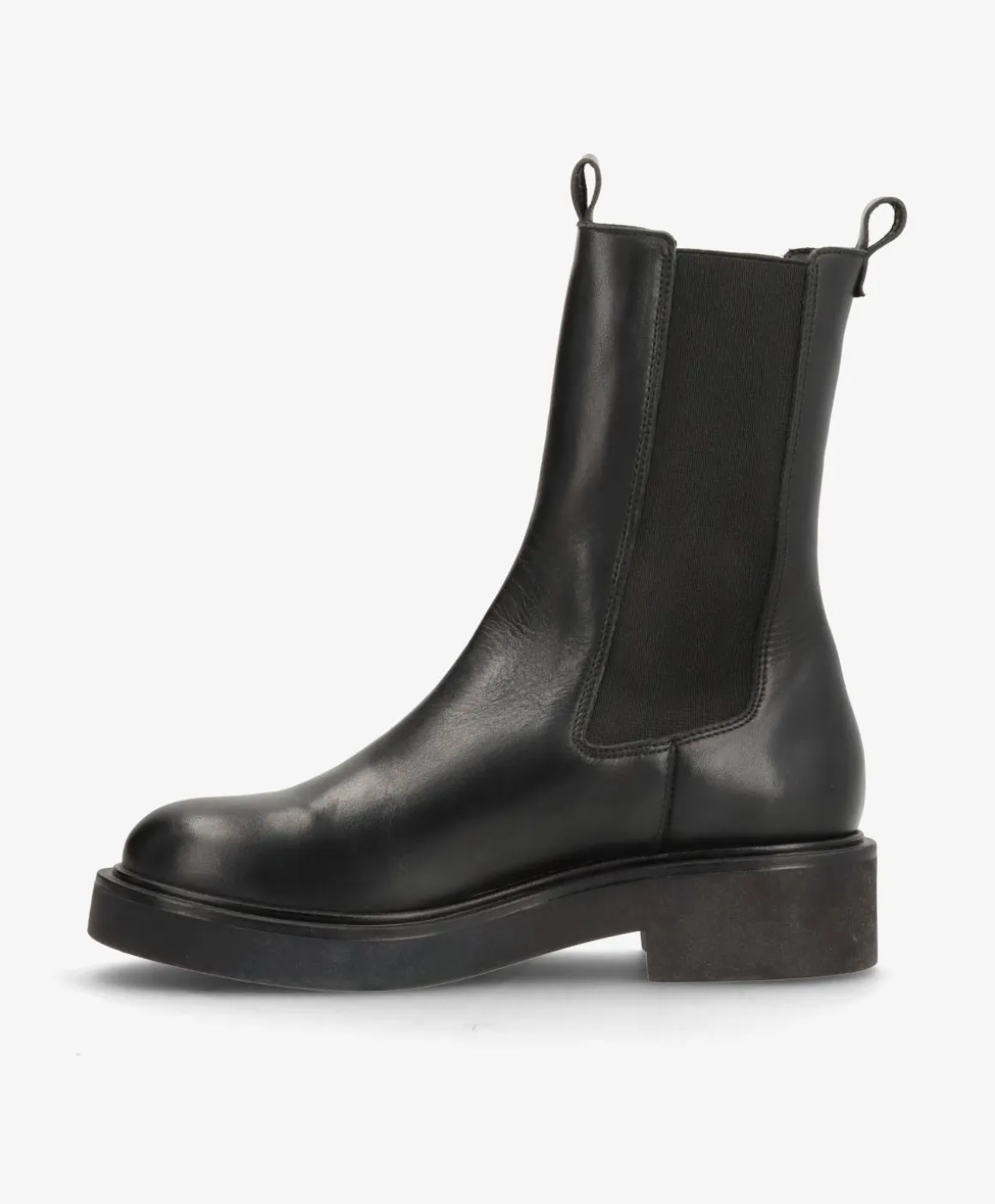 MADISON VALE fra phenumb copenhagen er den perfekte chelsea boot til dig, der elsker minimalistisk design og kompromisløs komfort. Designet i glat sort læder med brede elastikpaneler og trækstropper foran og bagpå, er den både let at komme i og super anvendelig til hverdagens mange outfits. Den sorte gummisål giver god støtte og en afslappet attitude.