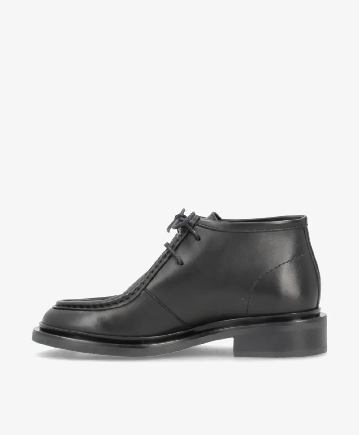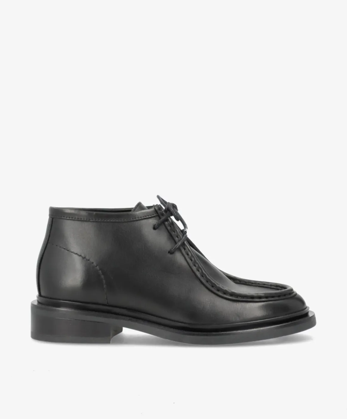MAGNOLIA fra phenumb copenhagen er en moderne fortolkning af den klassiske snøresko – designet til den stilbevidste kvinde, der går op i detaljer. Det glatte sorte læder fremstår både eksklusivt og alsidigt, og den diskrete syning langs kanten tilfører et elegant finish. Med sin skarpt formede silhuet, let spidset snude og minimalistiske snørebånd udstråler denne model selvtillid og attitude.