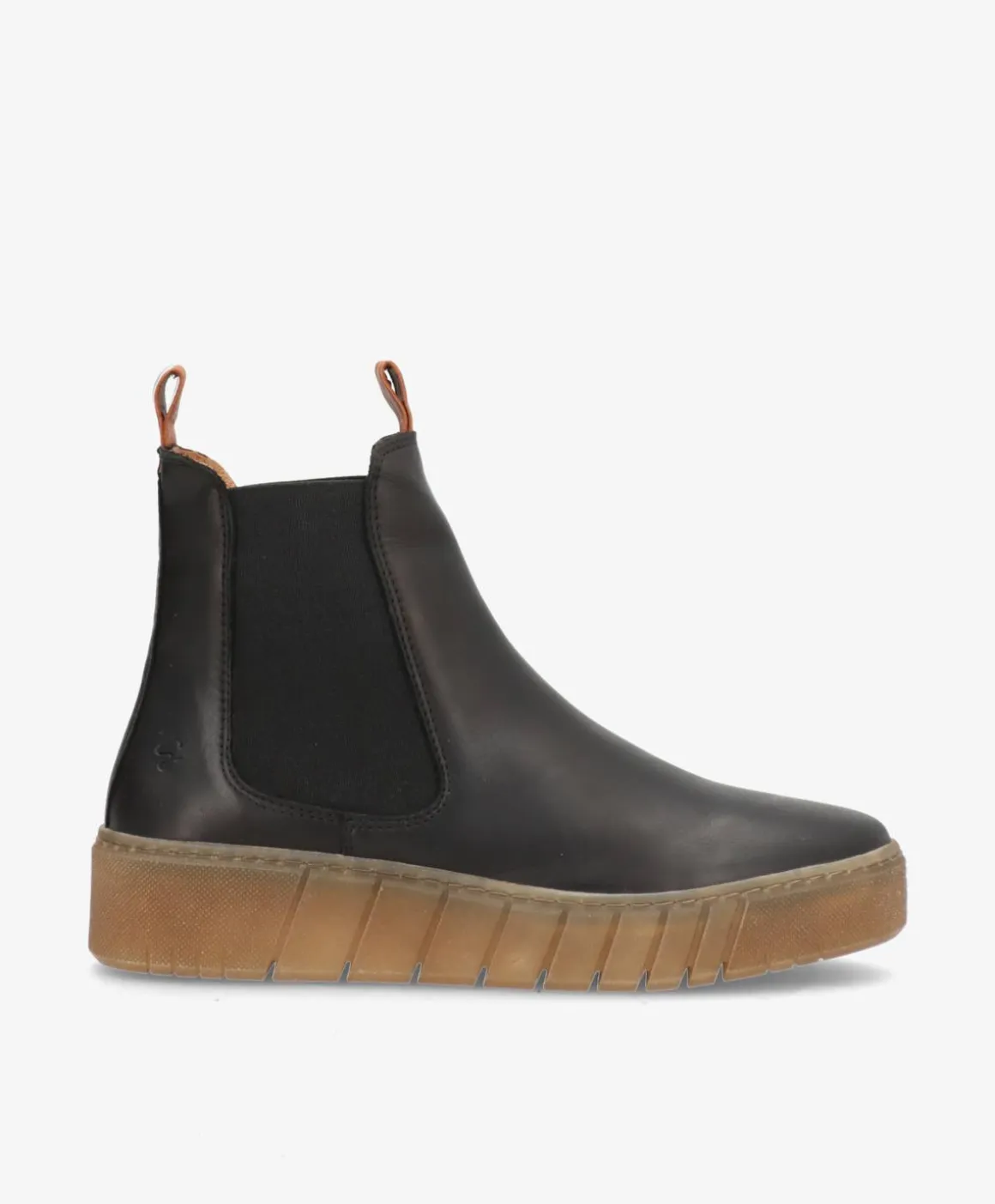 MOOVED støvlen i sort læder fra Shoedesign Copenhagen er til dig, der vil have det hele – stil, komfort og attitude. Den bløde, glatte læderkvalitet giver et eksklusivt udtryk, mens de elastiske sider og de karamelfarvede stropper gør den let at hoppe i. Den markante gummisål løfter designet med et sporty twist og sikrer, at du står fast i både by og natur.