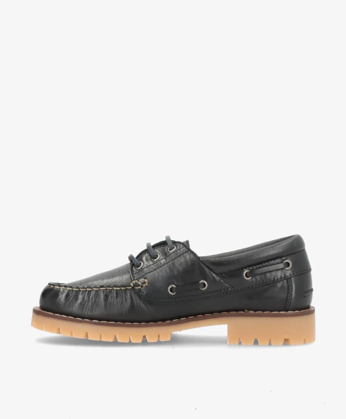 NAUTICA fra Shoedesign Copenhagen kombinerer klassisk håndværk med moderne funktionalitet. Den elegante sorte læderoverdel giver et sofistikeret og tidløst udtryk, mens de kontrasterende syninger understreger skoens eksklusive detaljer. De robuste lædersnørebånd og metaldetaljer fuldender det maritime look, mens den kraftige gummisål sikrer optimalt greb og komfort hele dagen.