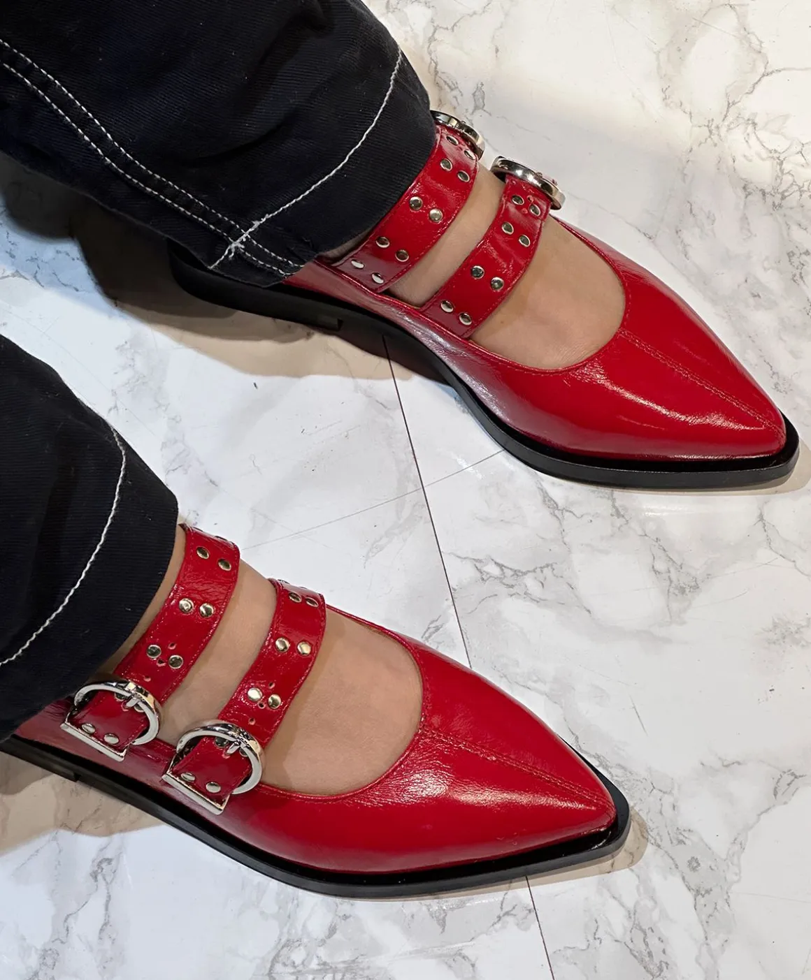 Det perfekte miks mellem råt og feminint; mød dit nyeste musthave fra phenumb copenhagen. NEED ballerinaen oser af cool elegance, og rammer den perfekte kontrast af det rockede og elegante. Ballerinaerne er udført i et groft skind, der kun bliver flottere ved brug og de to remme, som er justerbare, giver et ekstra cool touch til designet. Ballerinaerne har en spids snude og en kantet hæl, som er med til at understrege det flotte design. Med sit stilrene look kan disse ballerinaer nemt styles til både hverdag og fest, og de er den perfekte tilføjelse i garderoben hos hende, der elsker et kontrastfyldt look.