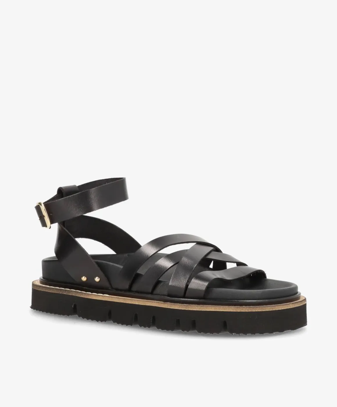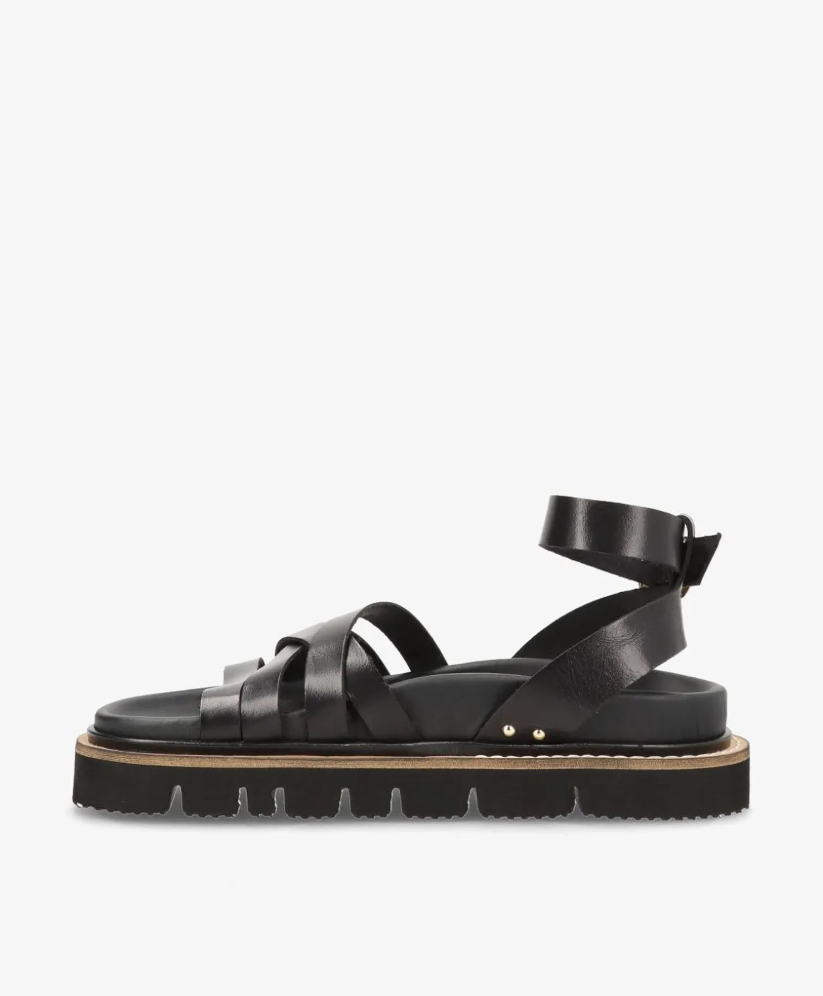 Denne NIKKIE sandal er spækket med velovervejede detaljer. Sandalen har krydsende remme over foden som givere den et cool look, samt en strop omkring anklen som kan justeres i størrelse.Specifikationer