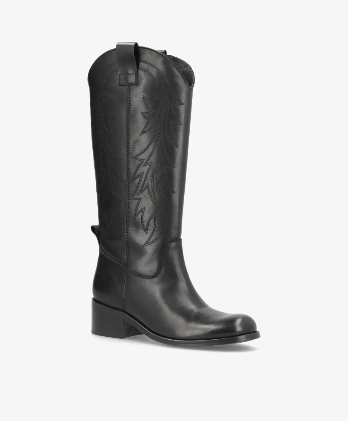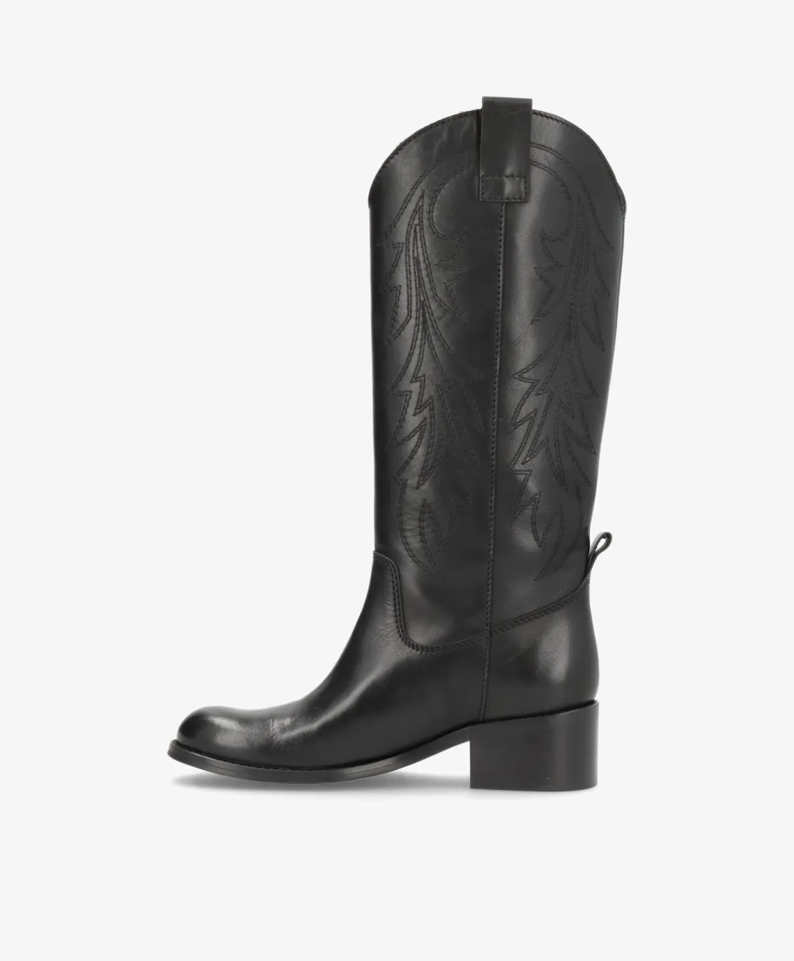 Alt for cool western boots i en klassisk sort med diskrete stikninger. Støvlerne har det tidløse western look med rund snude, hvilket gør dem til den perfekte tilføjelse i garderoben, hvis du elsker mikset mellem klassisk og rå. De er udformet i et blødt skind, som kun bliver smukkere ved brug og de har en lille hæl på knap 5 cm. Hælen har desuden et chunky look, så de løfter uden at gå på kompromis med komforten. Støvlerne er nemme at påføre og en drøm at style, så du kan skabe et helt personligt look.