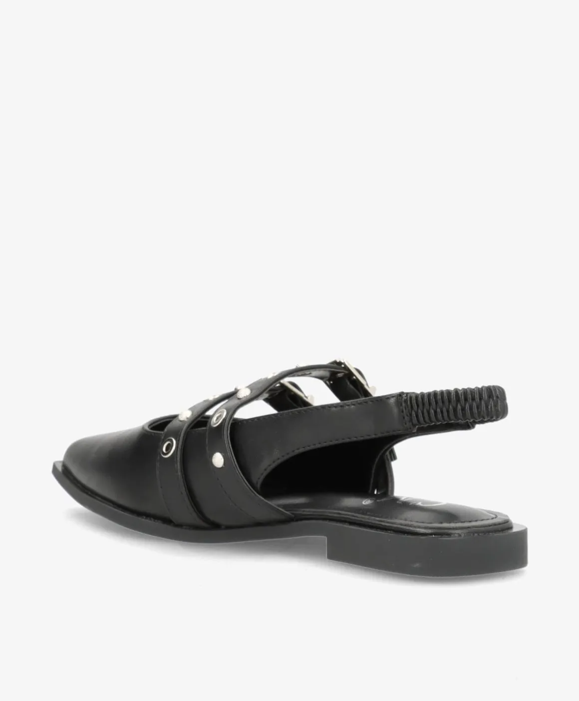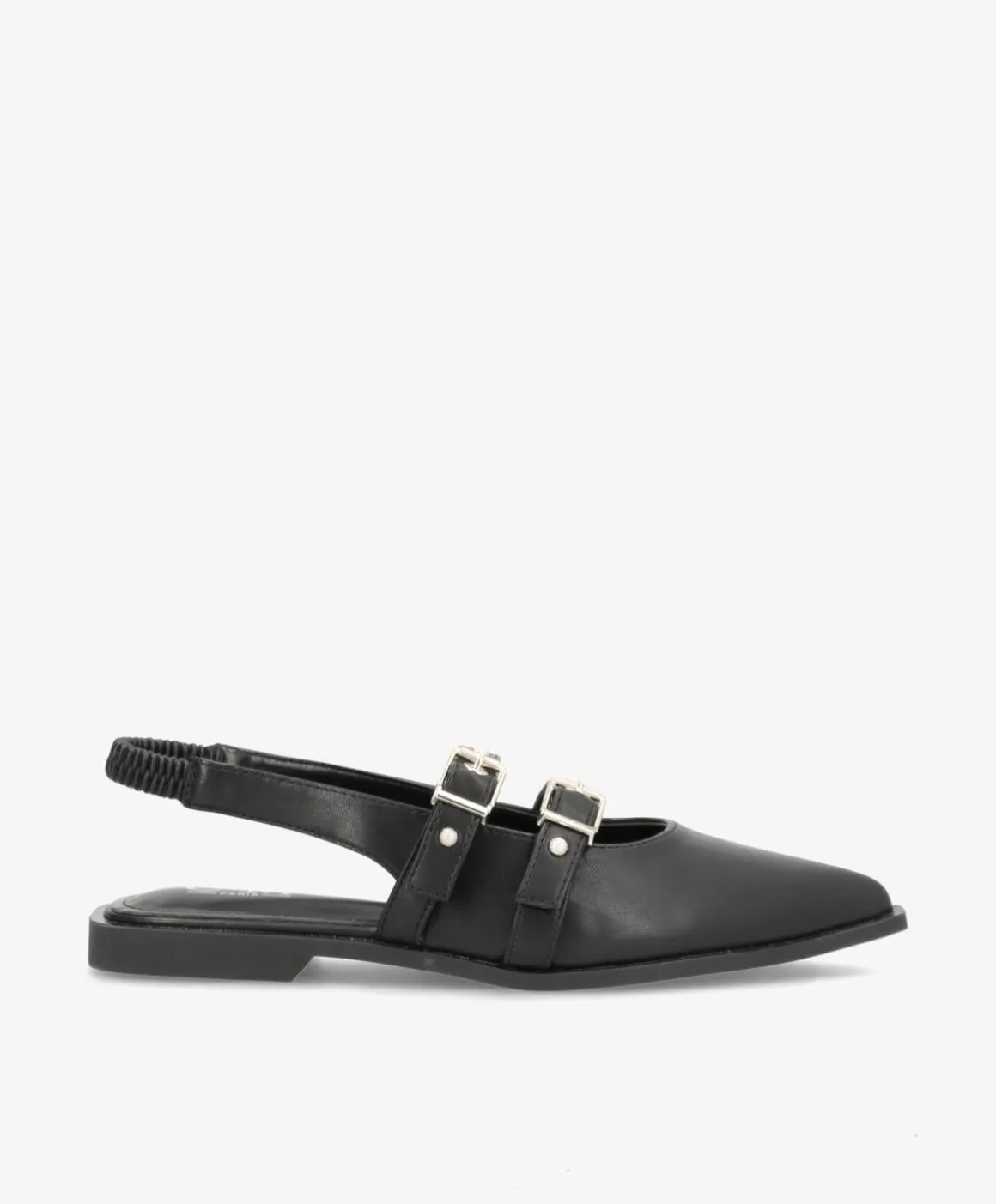 Stilfuld attitude møder komfort i RENNES – en moderne ballerina, der kombinerer skarpe linjer med feminine detaljer. Den spidse snude og de dobbelte remme med sølvfarvede spænder giver et edgy touch, mens den elastiske hælrem sikrer en behagelig pasform hele dagen. Skoen er lavet i imiteret skind og står på en flad, let hævet sål, der gør den ideel til både kontoret og caféturen.