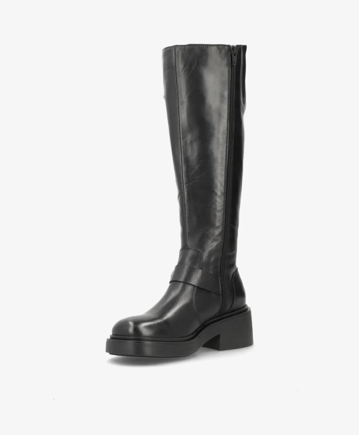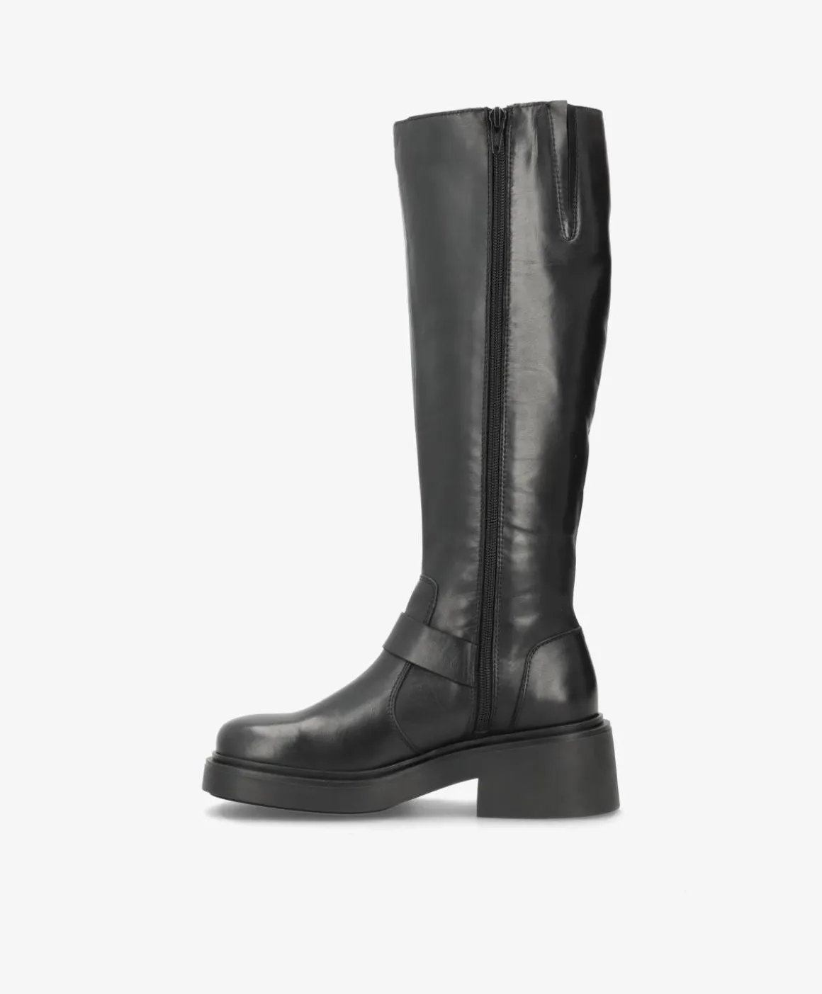 Støvlen har en praktisk lynlås i siden, så den er nem at tage af og på, samtidig med at det lange skaft tilfører et sofistikeret og powerfuldt udtryk. SADDLE LONG BUCKLE er den perfekte kombination af stil, funktionalitet og rå elegance, som kan styles til både hverdag og særlige anledninger.