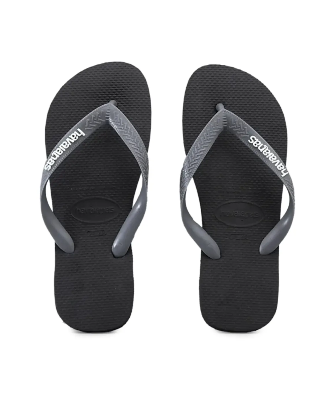 Slip sommerstemningen løs med havaianas TOP LP FC i den stilrene farve black / steel. Denne flip-flop kombinerer et klassisk sort design med stålgrå rem og et tydeligt Havaianas-logo, som giver et cool og sporty udtryk. Den lette og fleksible gummisål former sig behageligt efter foden og gør sandalen perfekt til både hverdagsbrug og feriedage.